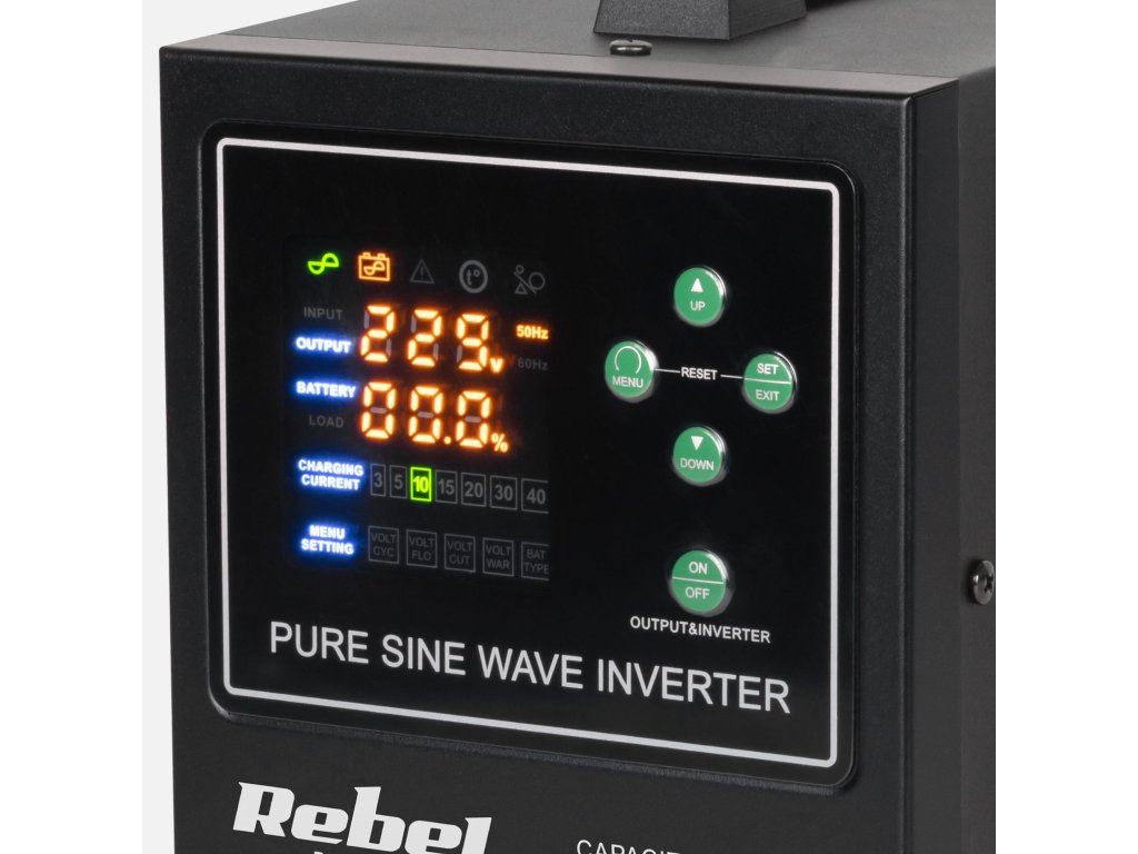 Praktično korištenje neprekidnog izvora Rebel garantira pregledan LED prikaz. Zahvaljujući njemu možete lako očitati trenutno stanje rada uređaja, provjeriti, između ostalog: ulazni napon, izlazni napon i frekvenciju. Osim toga, možete brzo provjeriti razinu opterećenja i razinu baterije.