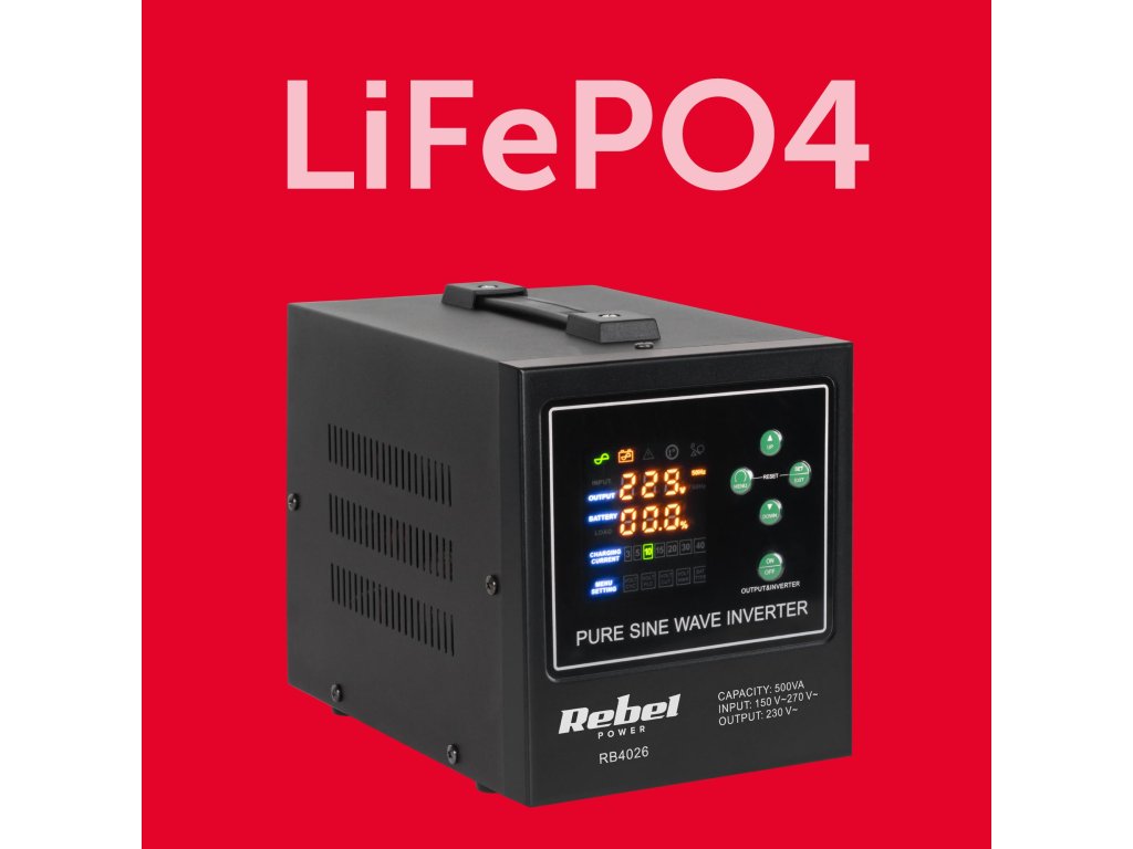Funkcija BAT TYPE na napajanju Rebel POWER-500-LFP4 omogućuje setu kabela podržavanje punjenja gelom i litijskim fosfatom (LiFePo4). Ovo omogućava optimalno postavljanje parametara punjenja, što se odražava na duljem vijeku trajanja. LiFePo4 se brže puni, što omogućava brže potpuno funkcioniranje uređaja uz minimalne zastoje.