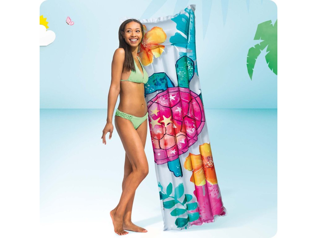 Praktičan- brzo ga napušeš i po potrebi ispustiš zrak! Nakon slaganja zauzima malo mjesta, tako da ga možeš ponijeti sa sobom na more, jezero, ili ga koristiti u svom bazenu!