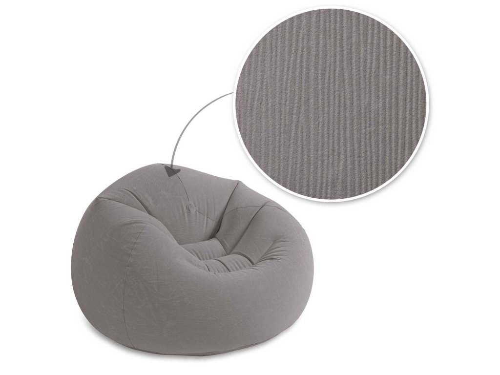 Najviša kvaliteta zajamčena od strane proizvođača Intex – lidera u napuhavajućem namještaju. Zahvaljujući upotrebljenom materijalu i sivoj boji, puf dobiva izgled elegantnog namještaja, teško je vjerovati da je to napuhavajuća fotelja.