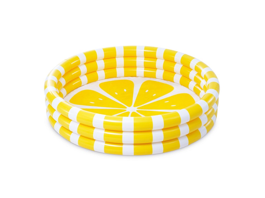 Šareni napuhavajući bazen Intex - to je klasičan napuhavajući bazen izrađen od čvrstog vinilskog materijala, čiji su zidovi sastavljeni od tri napuhavajuća prstena osmišljena tako da podsjećaju na limun.