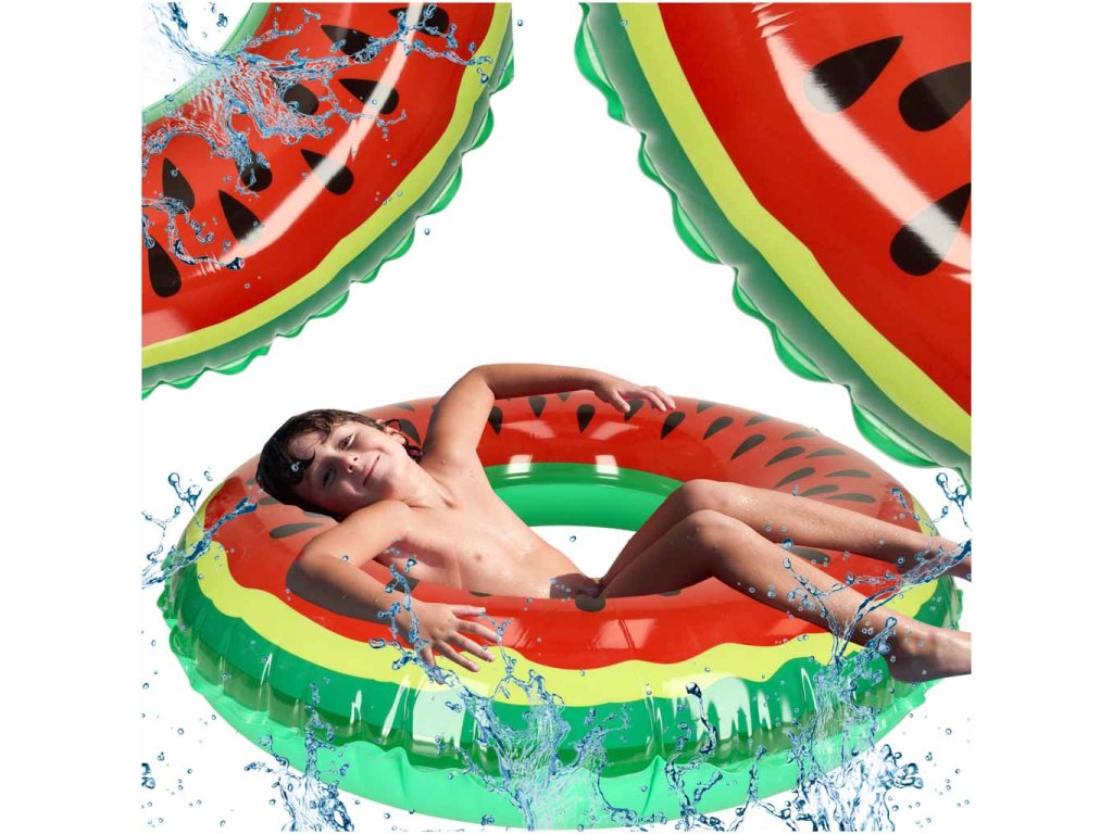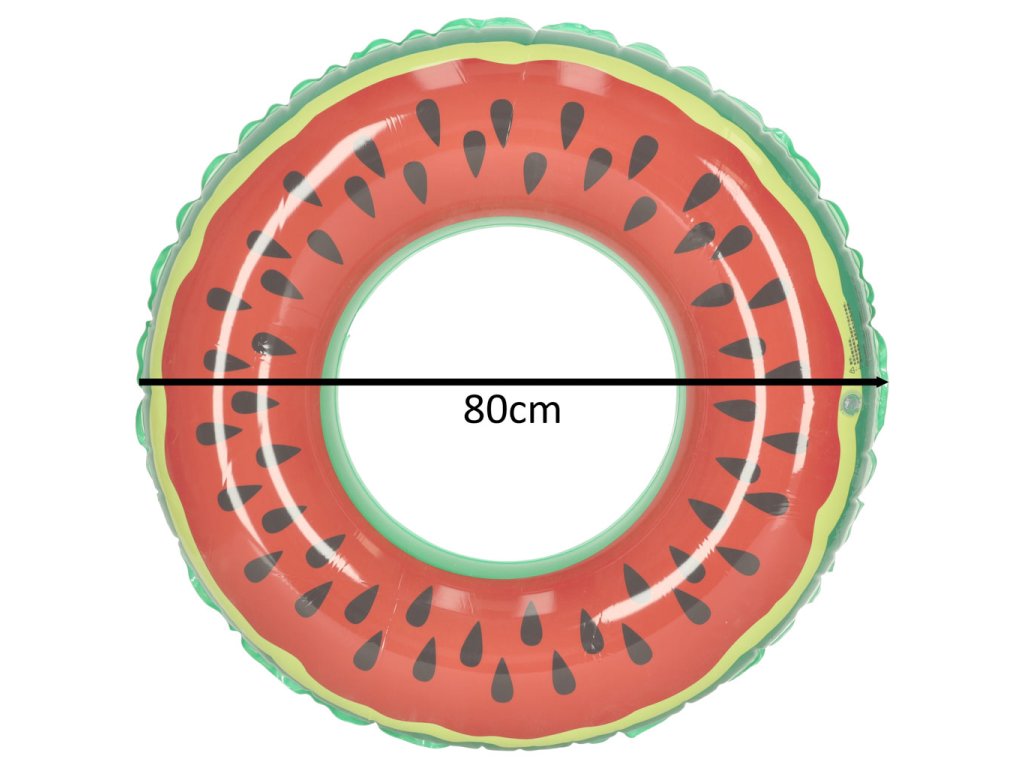 Šareni napuhujući kotač u obliku dinje, izrađen od visokokvalitetne PVC plastike, koja jamči dugotrajnost.