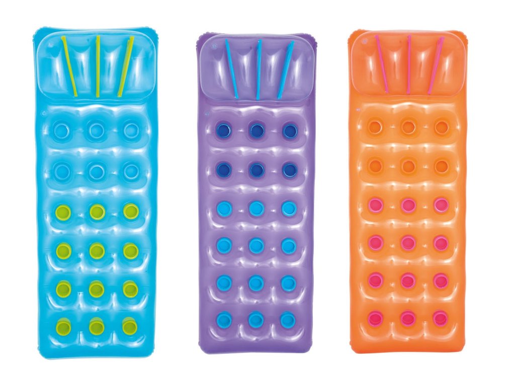 Bestway 43015 Madrac na napuhavanje jedan je od najpoznatijih plažnih artikala. Model predstavljen na ovoj aukciji je verzija Delux! Zahvaljujući coil beam tehnologiji, vrlo je stabilan i udoban. Ugrađeni jastuk na napuhavanje osigurava još veću udobnost i omogućuje udobno ležanje tijekom odmora. Glavne značajke: žive boje 2 zračne komore ugrađeni jastuk zakrpa za popravak uključena u set Tehnički podaci: Dimenzije: 188 x 71 cm Materijal: PVC Težina: 1,30 kg Maksimalno opterećenje: 90 kgAdditional parameters