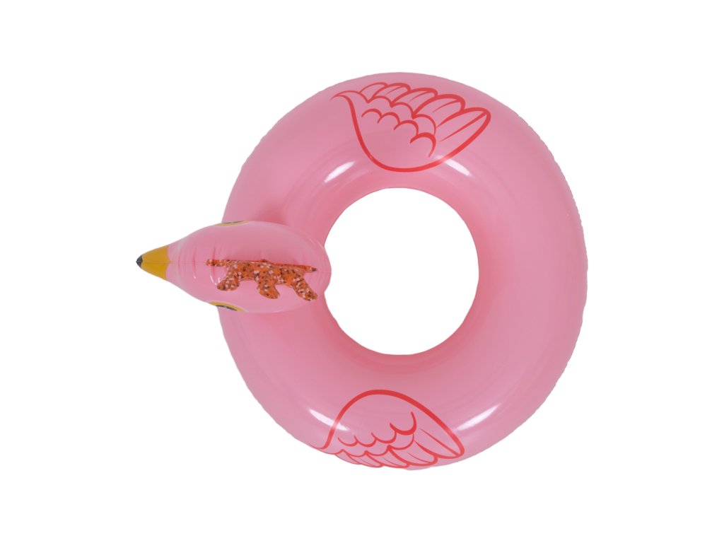 Mala stvar, ali donosi veliku radost! Napuhavajući kolut SUNCLUB je šareni pratitelj ljetnih avantura u vodi. Bajkoviti uzorak u obliku ružičastog flaminga osigurava da svako kupanje u bazenu postane zabava puna smijeha, mašte i pokreta. Idealno za djecu od 4 do 8 godina.