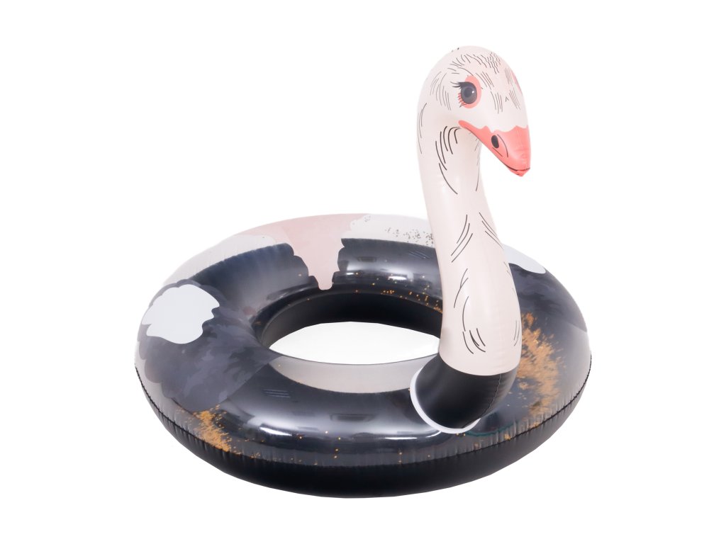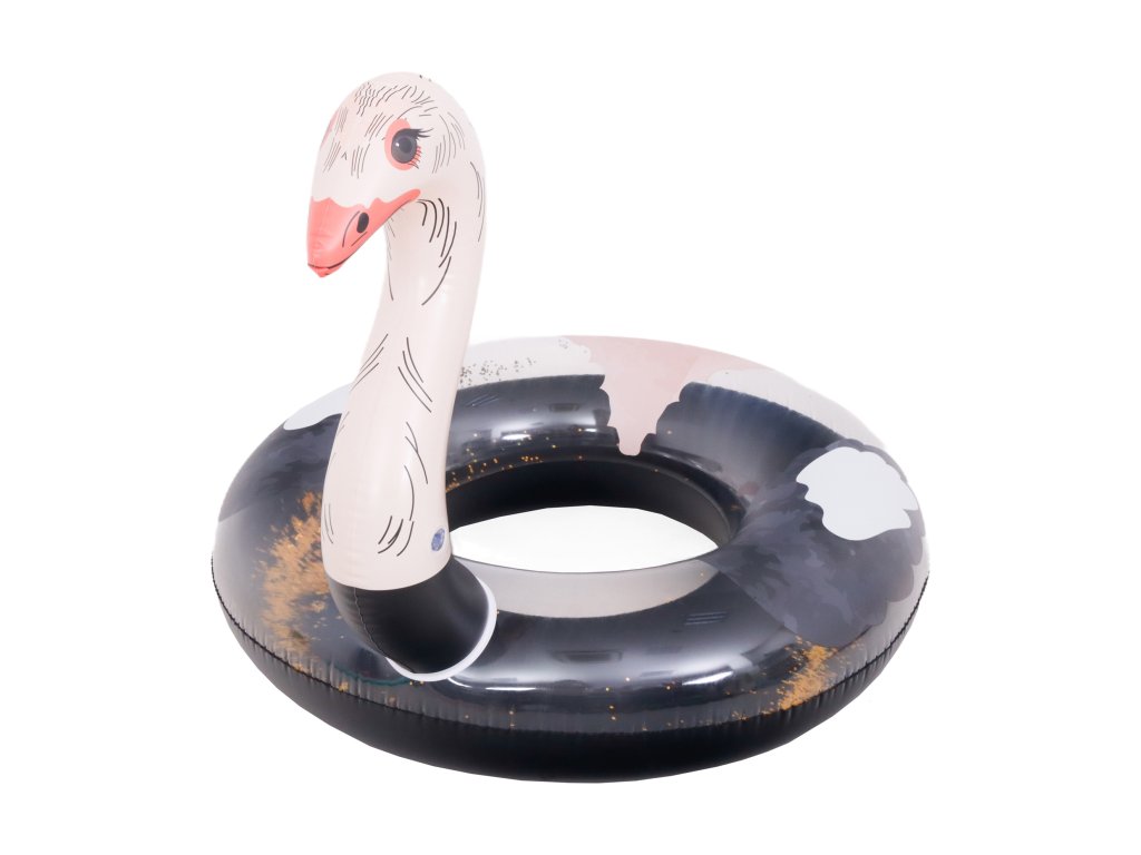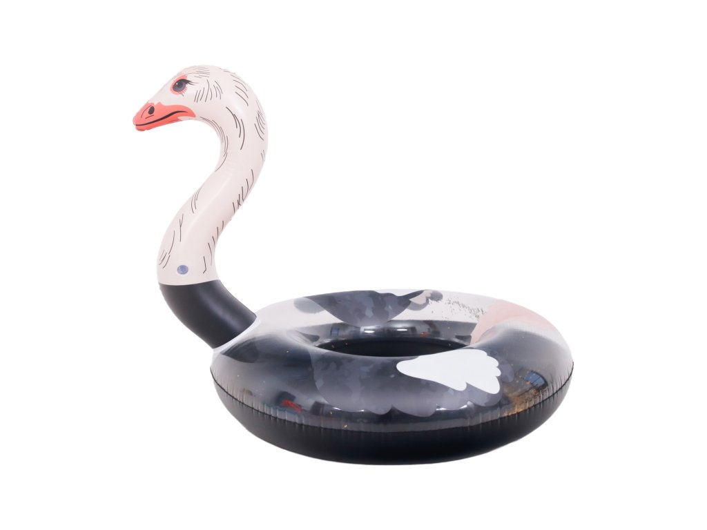 Prsten SUNCLUB ima oblik veselog noja s dugim vratom, velikim očima i šarenim kljunom. Ovaj neobičan dizajn ističe se među ostalim bazenskim dodacima, izaziva osmijeh i privlači poglede. To je sjajan dodatak za plažu, bazenski party ili zabavu s prijateljima.