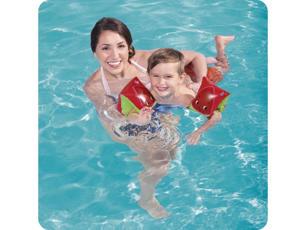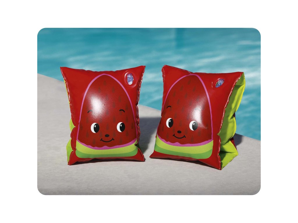 Rukavi za plivanje za djecu VOĆE BESTWAY 32042 HIT LJETA! Zabava u vodi jedan je od najboljih načina za djecu za aktivnu zabavu na svježem zraku. Prvi kontakt s vodom je izvanredno iskustvo za vaše dijete, stoga je vrijedno brinuti o njegovom dobrom osjećaju. Dječji rukavi za plivanje Bestway su dvokomorni, tako da slobodno drže dijete na vodi. Njihove dimenzije su 23 x 15 cm. Glavne značajke: lijepa grafika po izboru: ananas jagoda 2 zračne komore Tehnički podaci: Dimenzije: 23 x 15 cm Zračne komore: 2 Težina: 0,1 Predložena dob: od 3 do 6 godina Upozorenja i sigurnosne informacije: proizvod namijenjen za učenje plivanja nije igračka; proizvod namijenjen za učenje plivanja nije spasilačka oprema, ne štiti od utapanja; koristiti u vodi na dubini na kojoj dijete osjeća dno pod nogama i pod neposrednim nadzorom odrasle osobe; pravilno napuhavanje i korištenje opreme je ključno za osiguravanje sigurnosti, ne napuhujte previše; pazite da je sigurnosni ventil čvrsto zatvoren i da šavovi nisu pukli; ne gristi ili žvakati proizvode, zbog mogućnosti da se odgrizu dijelovi koji mogu uzrokovati opasnost od gušenja; raspon težine 18-30 kg, dob od 3 do 6 godina;Additional parameters