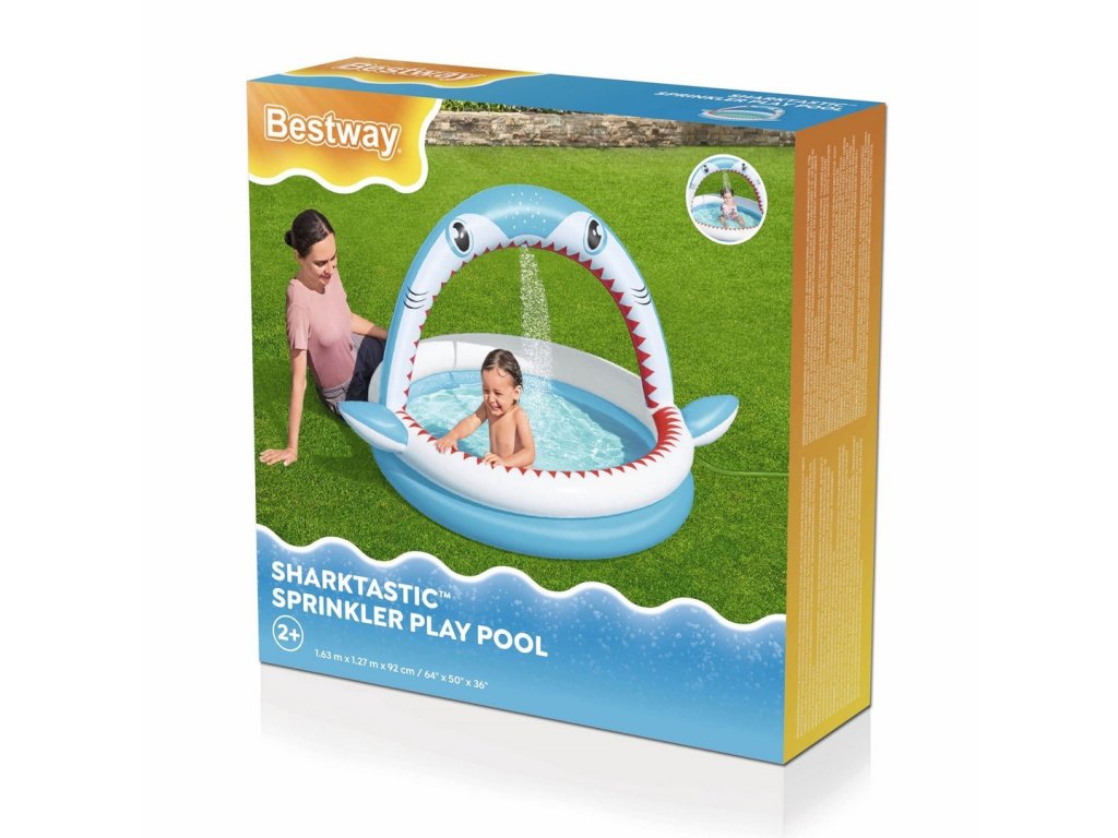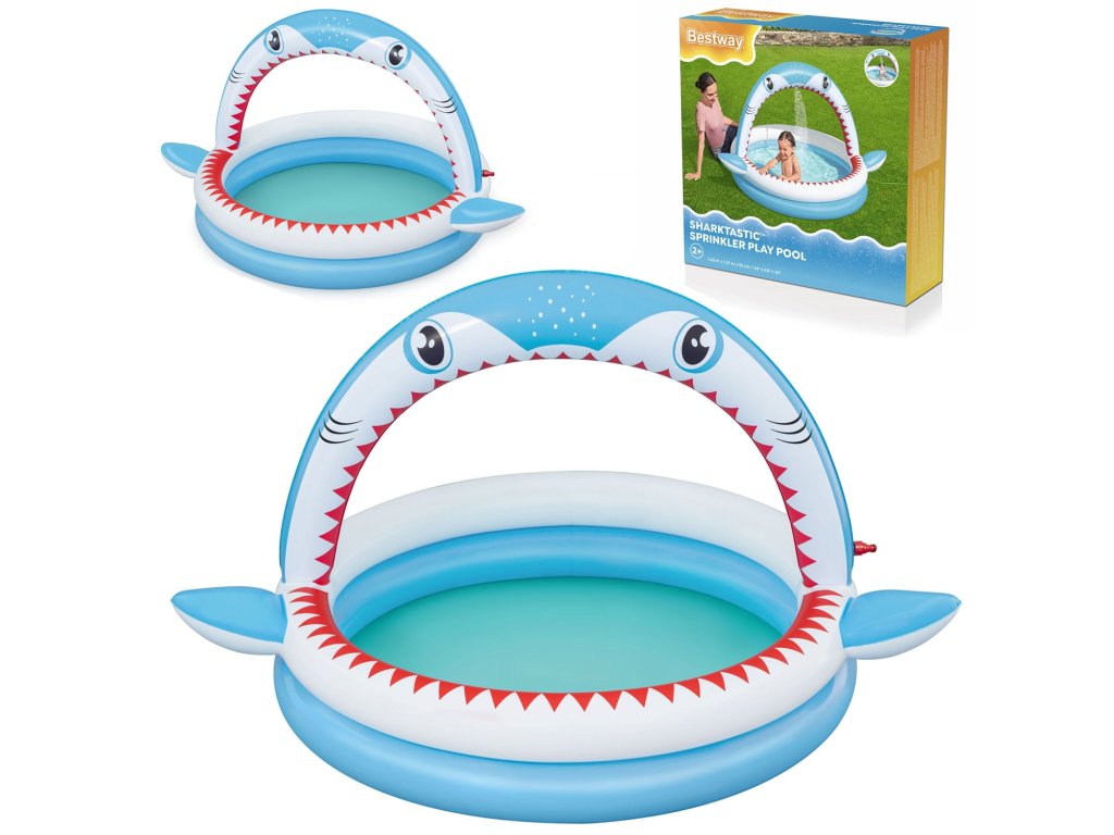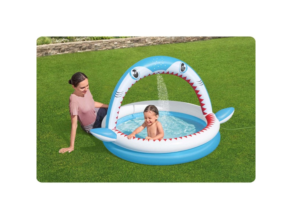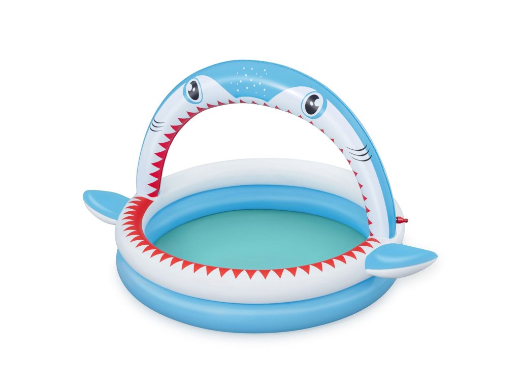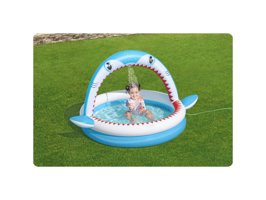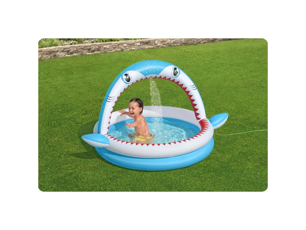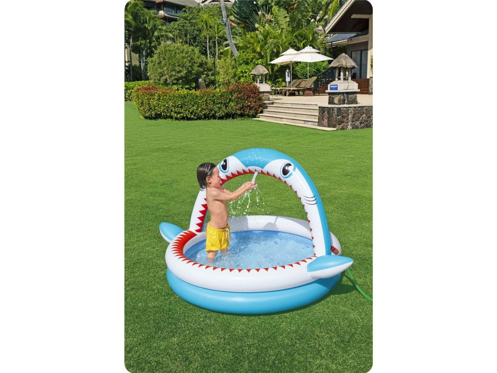 Ovaj bazen s duhovitom grafikom morskog psa je idealna prilika kako umjesto dosade kod kuće izaći van i u sjaju vrućih sunčevih zraka se prskati u vodi.