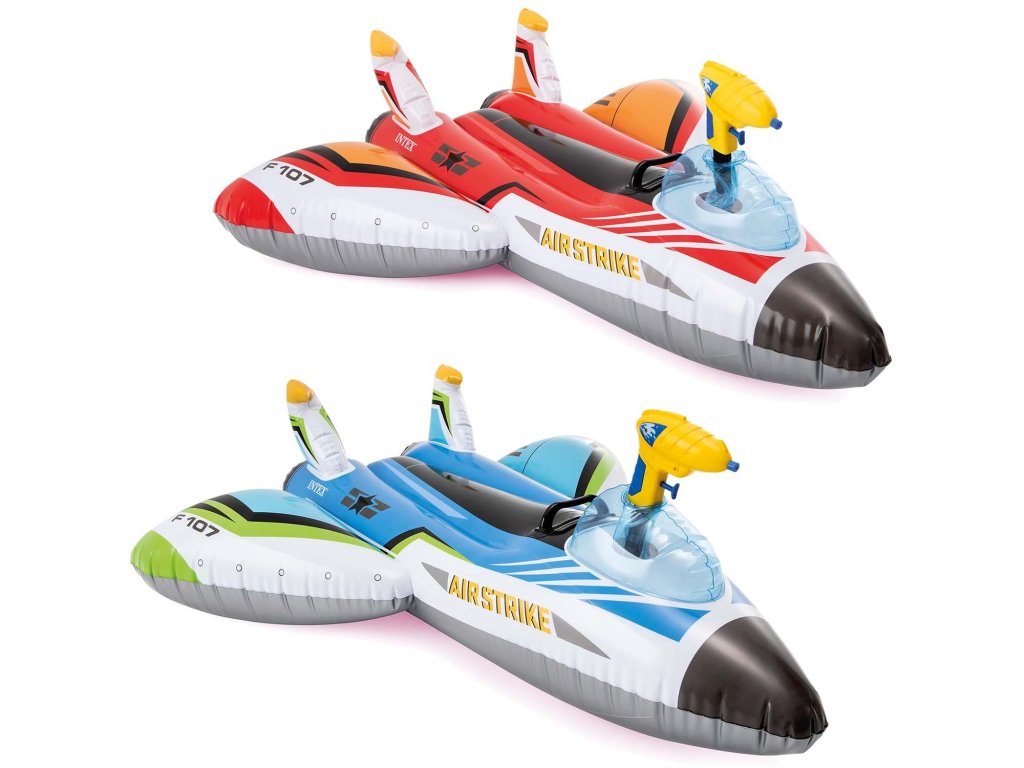 Nafukovací lietadlo s vodným delom 117 x 117 cm Letecka avantura u bazenu! Nesvakidašnji napuhani madrac u obliku mlažnjaka oduševit će svako dijete. Udoban oblik za sjedenje, čvrsta drška i izdržljiv PVC materijal čine madrac idealnim za igru u vodi. Mlažnjak je opremljen vodenim topom. Vaše dijete će moći doživjeti fantastične vodne bitke. Glavne značajke: udobna drška vodeni top komplet za popravak u setu Tehnički podaci: Dimenzije: 117 x 117 cm Materijal: PVC Težina: 0,955 kg Preporučena dob: od 3 godineDodatni parametri