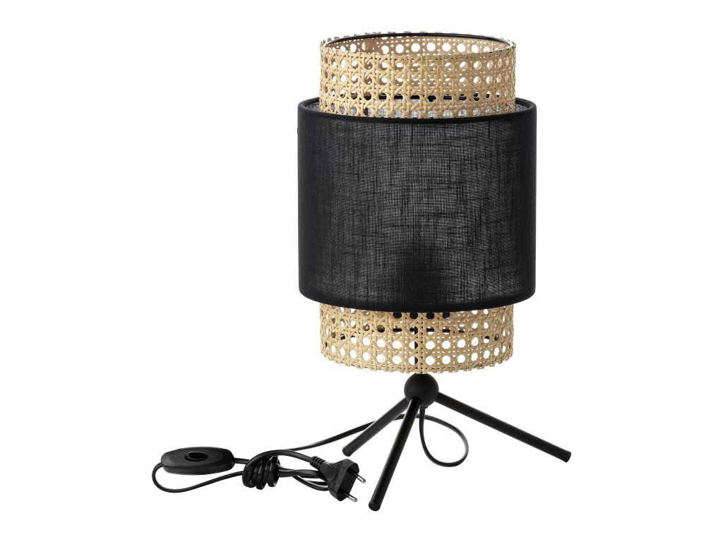 visina:400 mmIzvor svjetla:E_27 Max 60WBroj svjetlosnih točaka:1Nazivni napon:230VMaterijal okvira:Metal + plastikaBoja okvira:crnaMaterijal abažura/sjenila:Tkanina + prirodni ratanBoja abažura/sjenila:Crna / slamnataširina:200 mmduljina:200 mmDodatni parametri