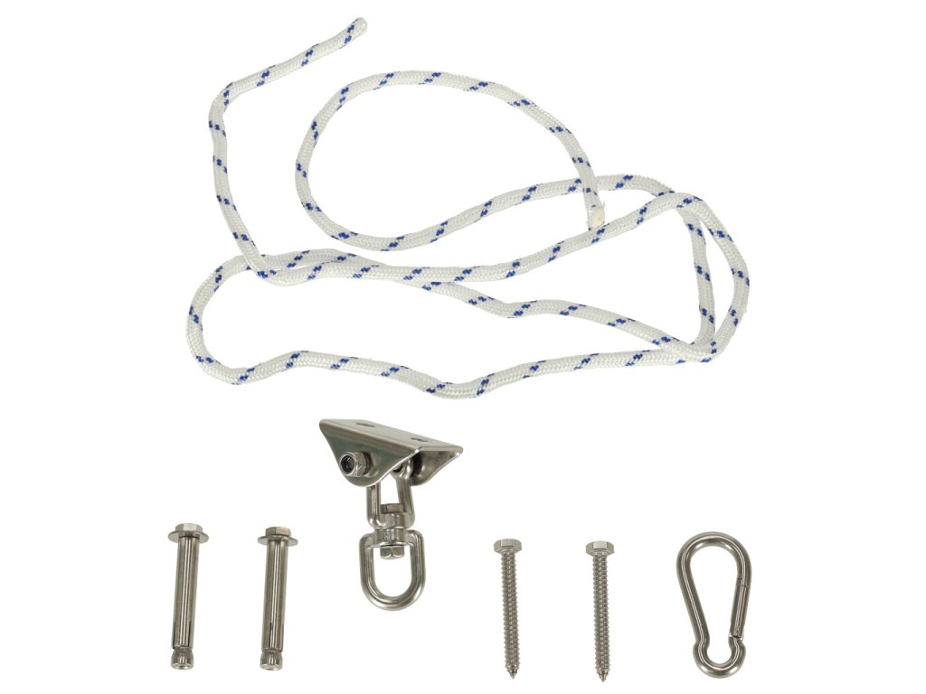 Set sadrži dijelove kao što su rotirajuća stropna kuka, karabin, uže i četiri vijka - drugim riječima, sve što će vam trebati!