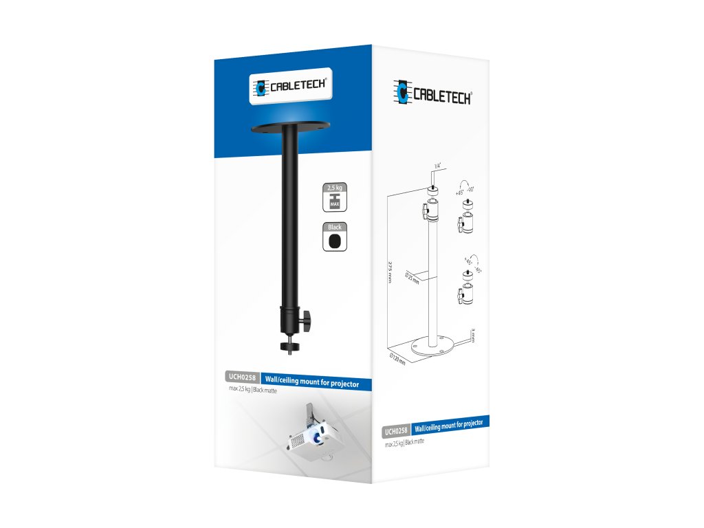 Pokretni nosač za zid/strop nudi fleksibilnu montažu s maksimalnim opterećenjem do 2,5 kg. Zahvaljujući kutovima zakretanja od +90° do -45° i poravnanju u horizontalnoj ravnini od +45° do -45° pruža idealno podešavanje kuta gledanja. Čvrsta čelična konstrukcija u elegantnoj crnoj mat izvedbi i podesiva udaljenost od zida jamče stabilnost i estetiku. Uz to, u pakiranju ćete pronaći montažne vijke i tiple, koji olakšavaju brzu i čvrstu montažu.