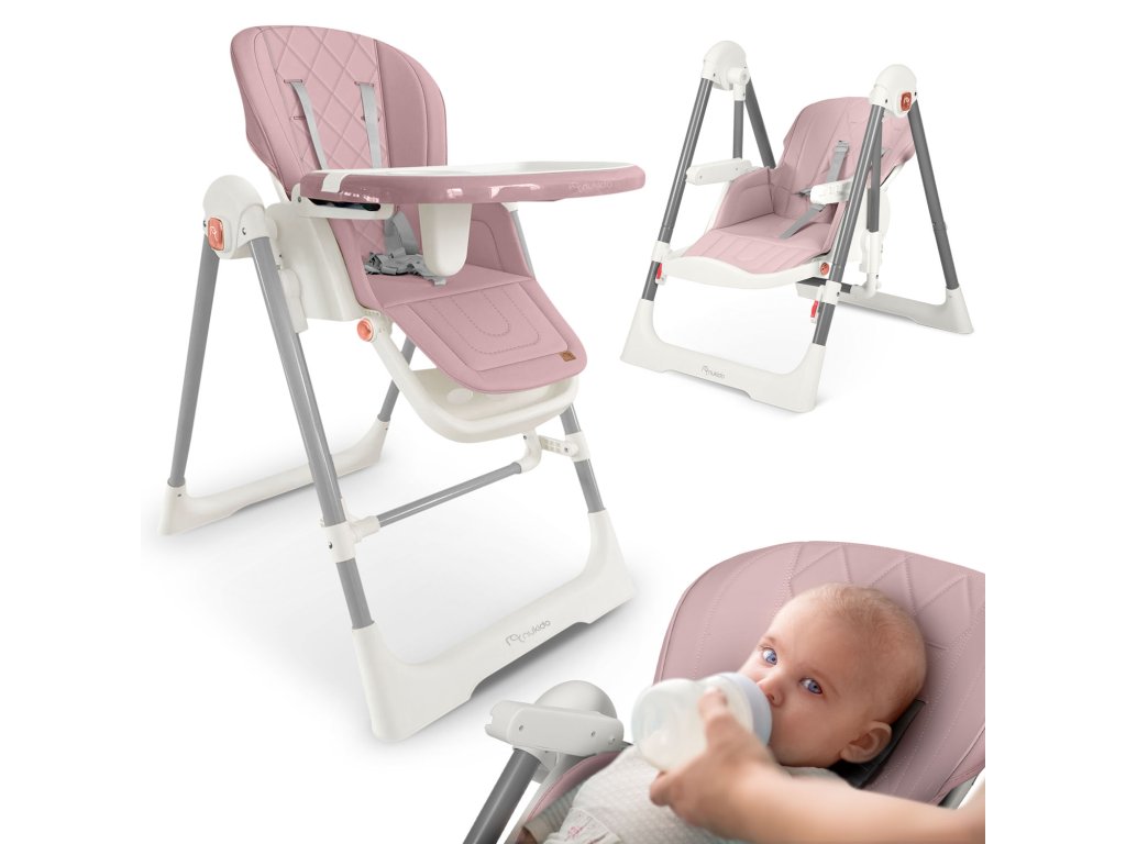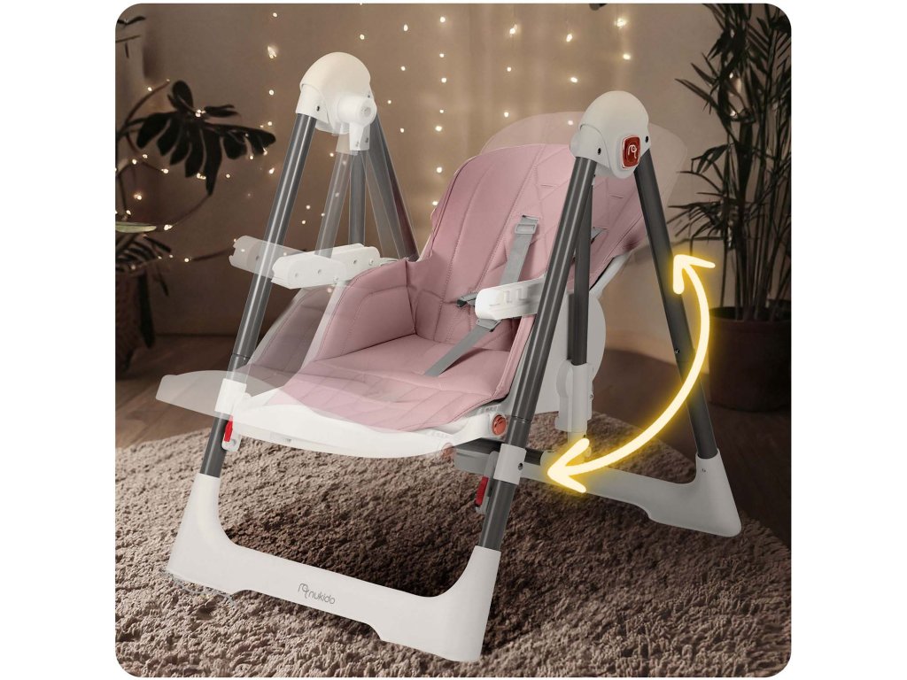 Možete nahraniti dijete u stolici s pladnjem, a nakon jela ukloniti pladanj, spustiti sjedalo i pretvoriti stolicu u ljuljačku kako bi dijete moglo mirno odmarati.
