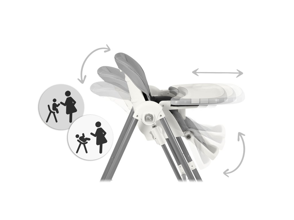 Stolica omogućava slobodno reguliranje udaljenosti pladnja od djeteta. Možete ga u bilo kojem trenutku potpuno demontirati.