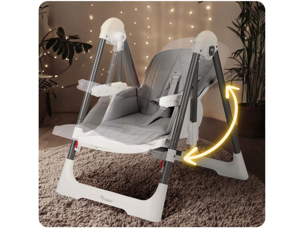Možete nahraniti dijete u stolici s pladnjem, a nakon obroka ukloniti pladanj, spustiti sjedalo i pretvoriti stolicu u ljuljačku kako bi dijete moglo mirno odmarati.