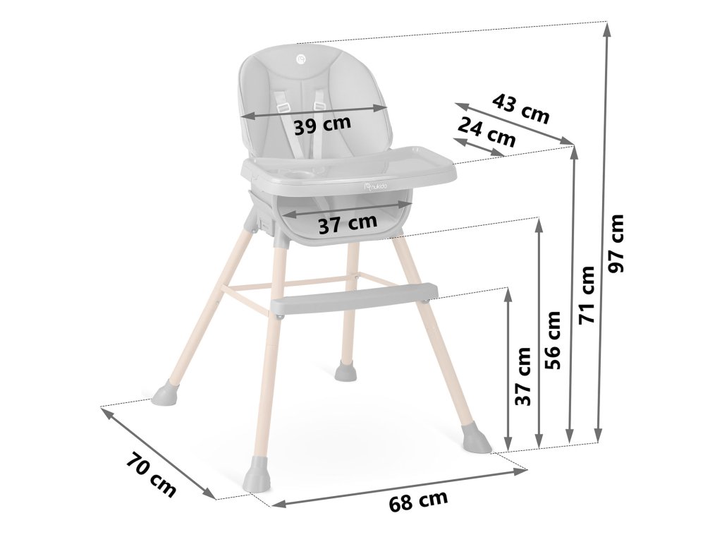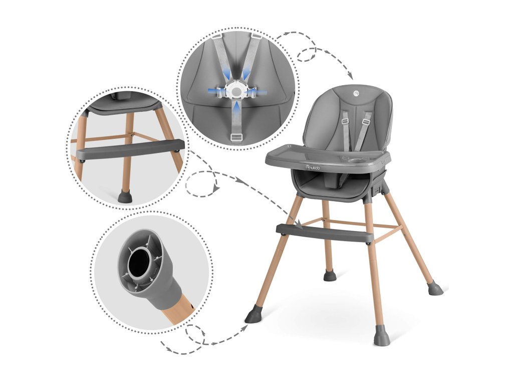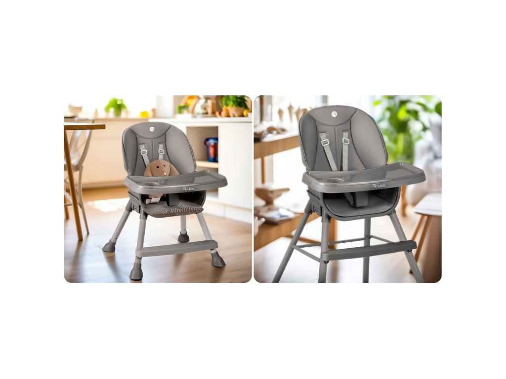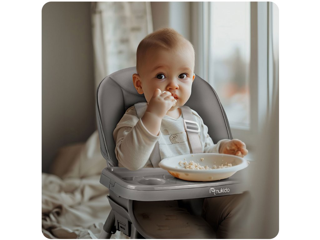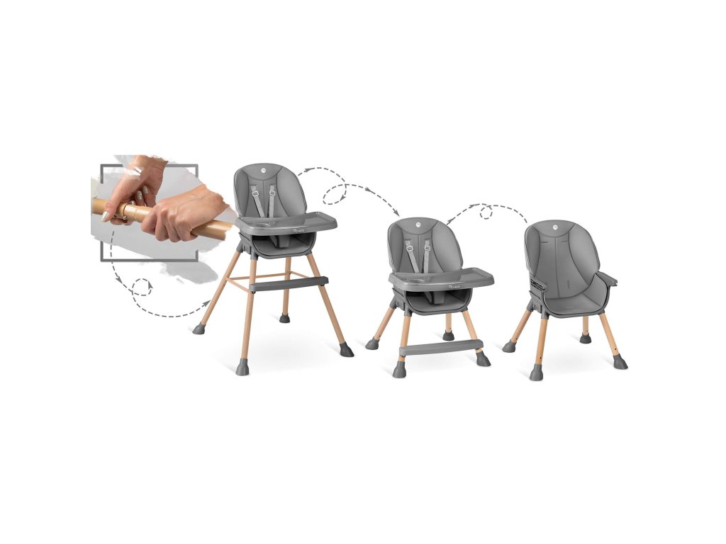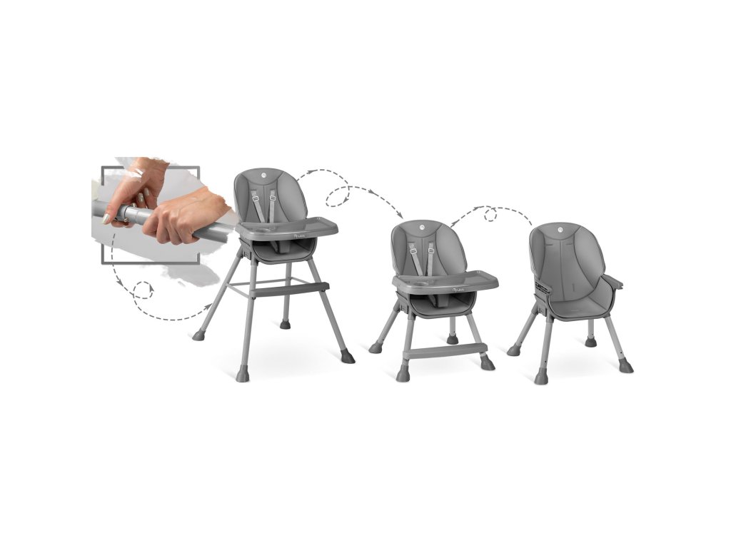 Stolica omogućuje slobodno podešavanje udaljenosti tacne od djeteta. Također se može u potpunosti ukloniti u bilo kojem trenutku.