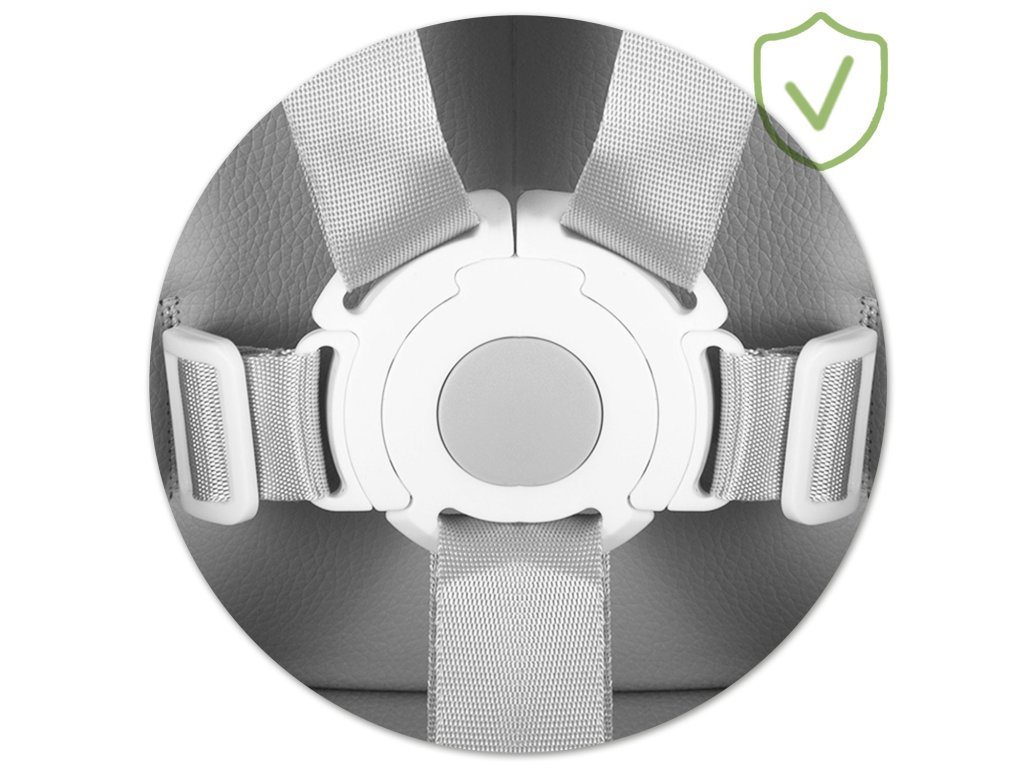 Dodatna sigurnost, 5-točaka sigurnosni pojasevi, koji ne dopuštaju spontano izvlačenje djeteta iz stolice. Mogu se potpuno ukloniti kada više nisu potrebni.