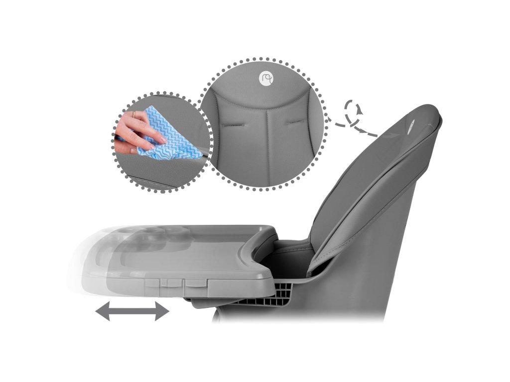 Uklonjivi poklopac na tacni uvelike olakšava održavanje čistoće. Mekani i udobni presvlake izrađene su od materijala koji ne upija nečistoće.