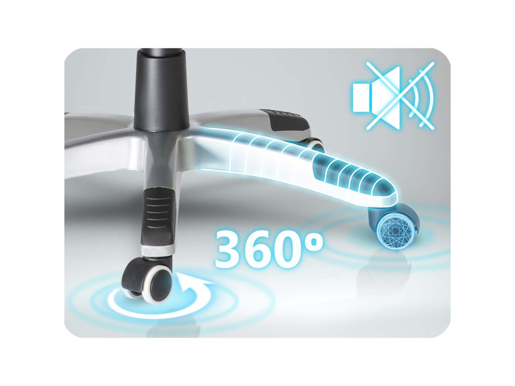 Tiha, obložena kotačića 360° omogućuju glatko pomicanje bez buke i bez ogrebotina na podu.