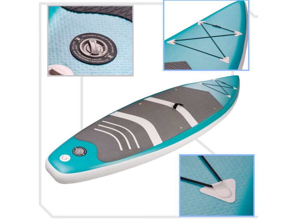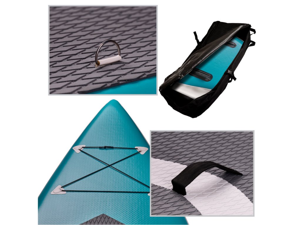 Nafúknutá doska má rozmery 320 × 81 × 15 cm, takže je stabilná a ľahko ovládateľná aj pre začínajúcich paddleboardistov. Po vyfúknutí možno dosku zložiť a uložiť do priloženého prepravného obalu, ktorý má podobu batohu, čo uľahčuje jej prepravu a skladovanie. Po vyprázdnení sa dá doska zložiť a uložiť do priloženého prenosného puzdra, ktoré má podobu batohu, čo uľahčuje prepravu a skladovanie dosky, keď sa nepoužíva.