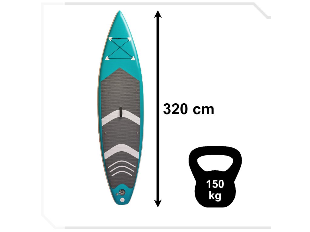 SUP TOURING NAFUKOVACIA DOSKA S PRÍSLUŠENSTVOM ATLETICKÁ 320CM 150KG