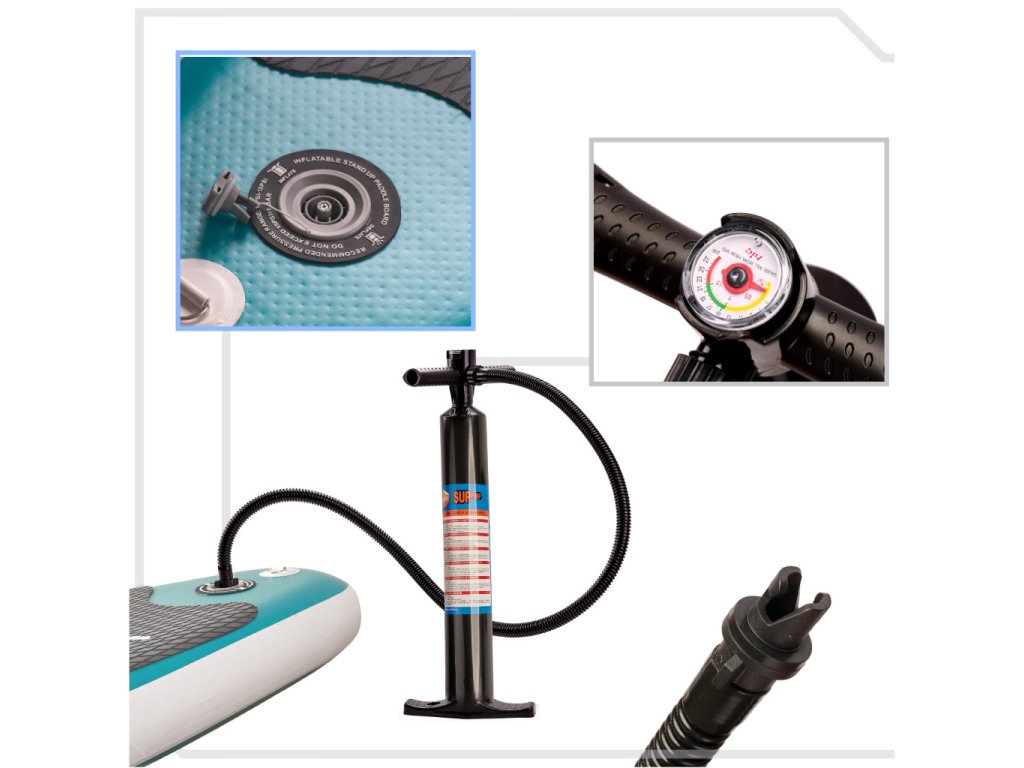 Ručná pumpa s manometrom na rýchle nafúknutie dosky