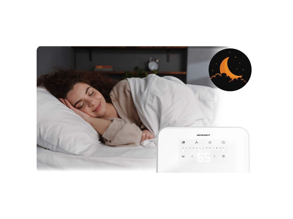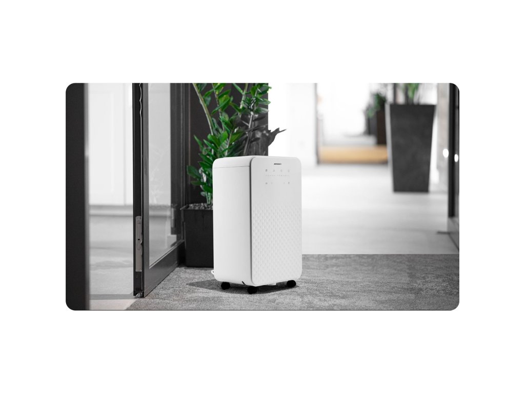 Moderni osjetljivi upravljački panel sa sustavom laganog dodira , smješten na vrhu odvlaživača, osigurava najvišu razinu udobnosti korištenja. Omogućuje vam podešavanje svih operativnih parametara. Zaslon prikazuje trenutnu vlažnost u prostoriji i odabrane funkcije. Omogućuje lako uključivanje noćnog načina rada , koji isključuje panel i omogućuje vam udobno spavanje ili jednostavno štednju energije.