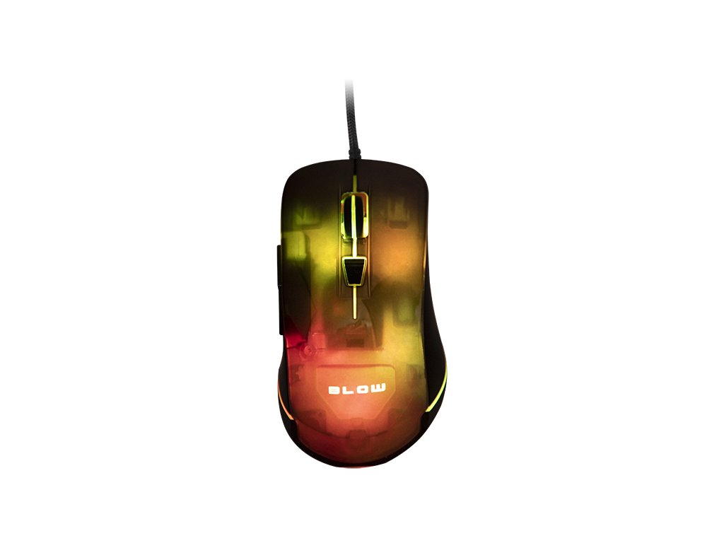 SpecifikacijaTehnologija: optičkaOsjetljivost: max. 2400 DPIBoja: crna, raznobojna pozadinska osvjetljenjaBroj gumba: 6Kotačić: daPort: USDužina kabela: 1,5 mLED osvjetljenje: automatska promjena bojeŽičani optički miševi BLOW Adrenaline SkyFEEL odlična su alternativa skupim miševima namijenjenim za početnike igrača računalnih igara. Dobro će funkcionirati u mnogim računalnim igrama i na stolu mladog igrača izgledat će profesionalno, a broj gumba i LED osvjetljenje pružit će zabavu na duge sate.