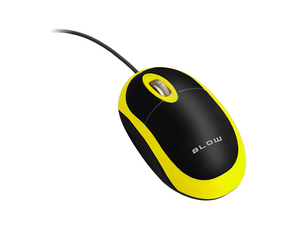Žičani optički miš BLOW MP-20 u žutoj boji.
