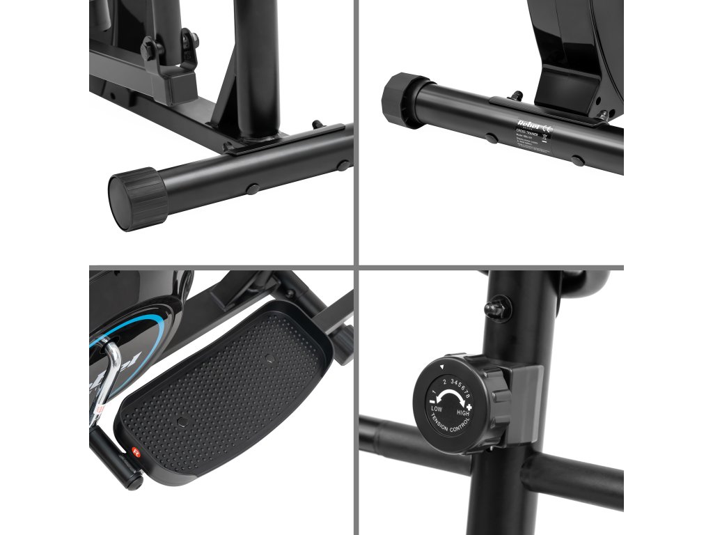 Redovita tjelovježba na eliptičnom trenažeru Rebel Active pomoći će vam sagorjeti kalorije i poboljšati izgled vašeg tijela. Zahvaljujući ručnom podešavanju otpora na 8 razina, kućni eliptični trenažer RBA-1011 omogućuje nježno uvođenje u trening, što ga čini idealnim za one koji se tek počinju baviti aktivnostima. Učinkovitost vježbanja povećava i korištenje zamašnjaka od 4 kg.