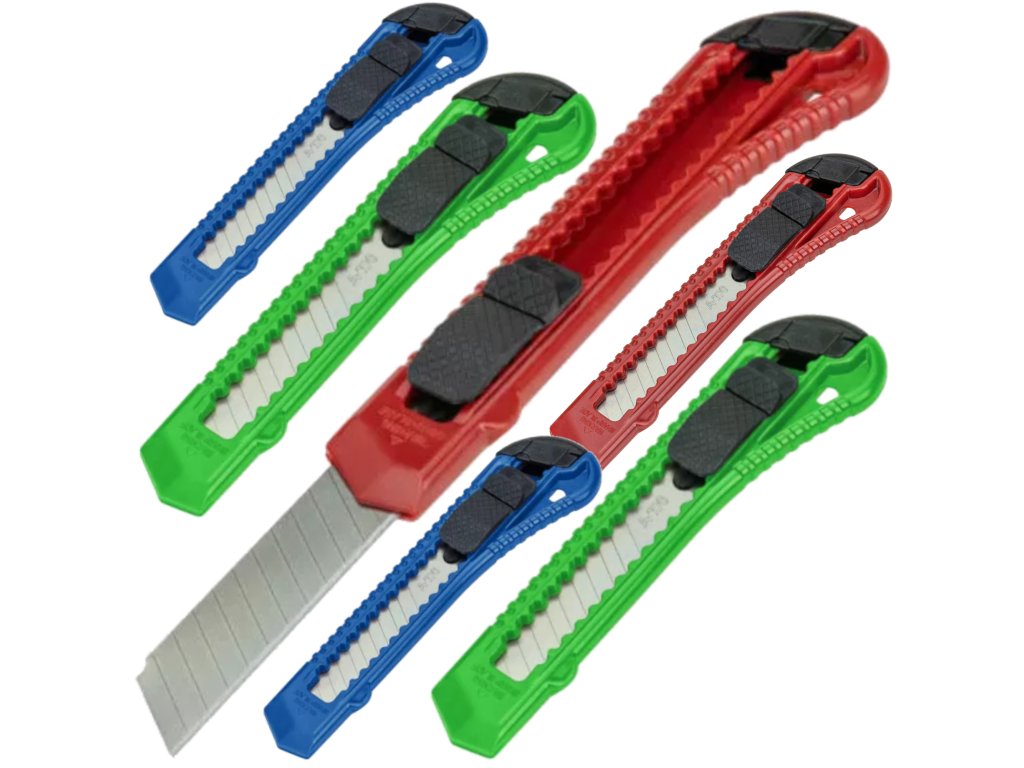 Nóż posiada wysuwane ostrze łamane co 0,5 cm. Łącznie do wykorzystania jest 10 części, które łamie się jedna po drugiej po zużyciu i stępieniu danego fragmentu. Rękojeść noża wykonana jest z twardego tworzywa sztucznego. System „auto lock” zabezpiecza ostrze przed niebezpiecznym, przypadkowym wysunięciem. Nóż zakończony jest małym otworem umożliwiającym powieszenie go w narzędziowni. W bardzo łatwy sposób można wymienić ostrze na nowe.