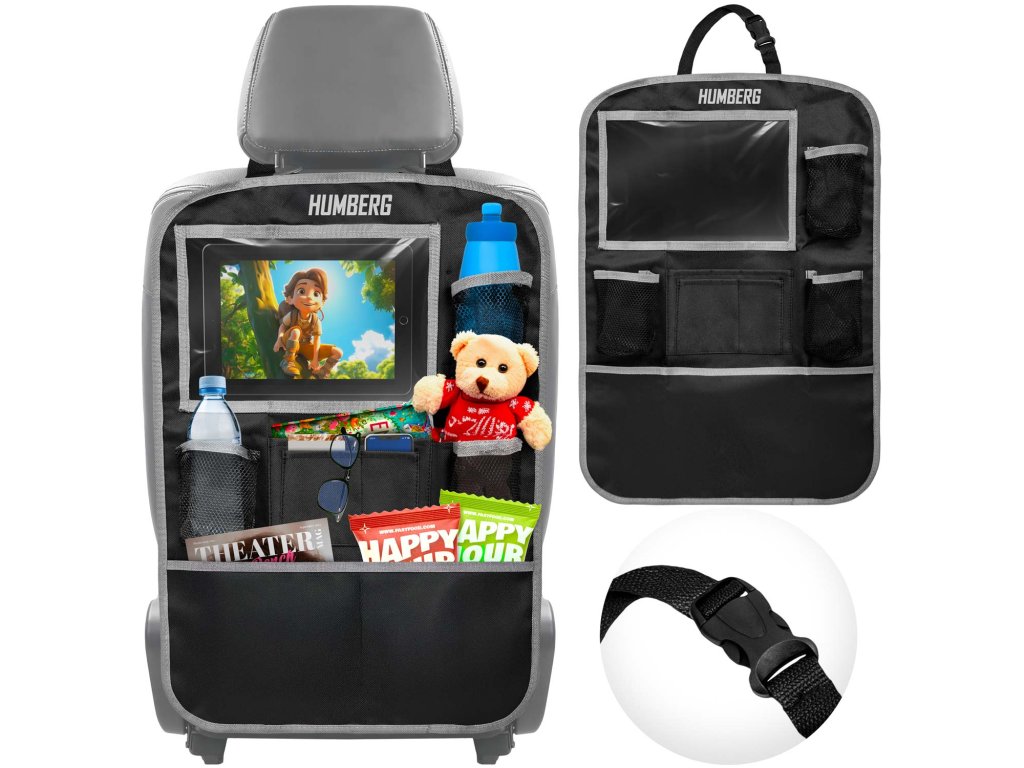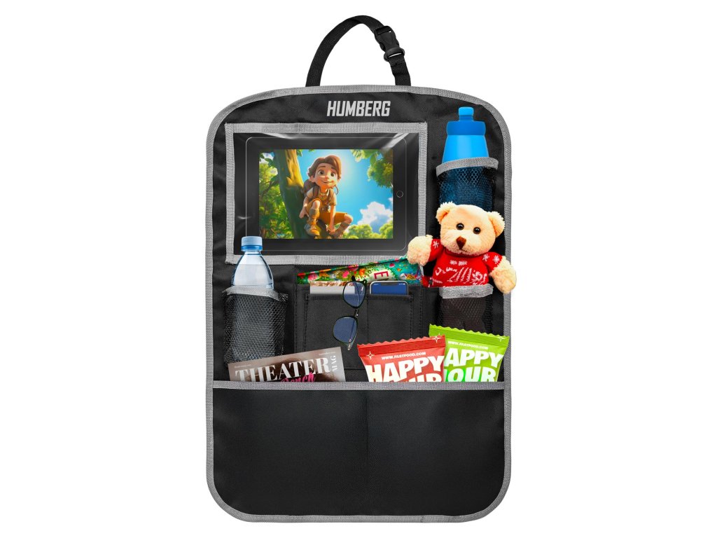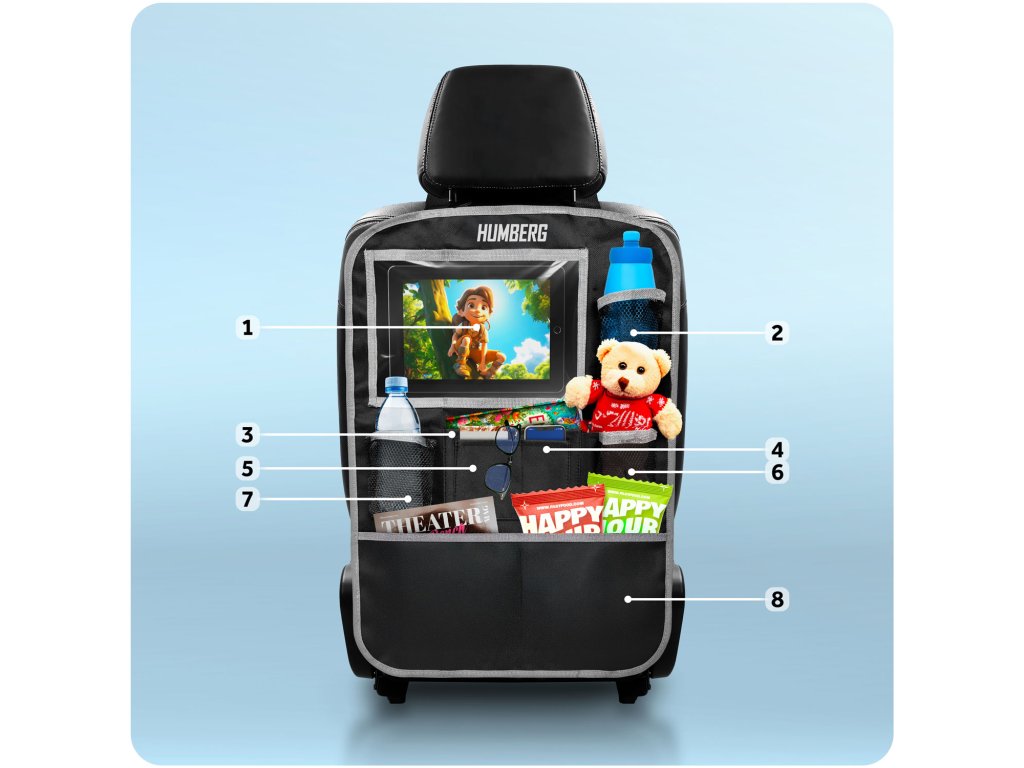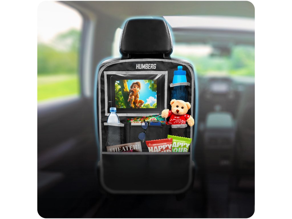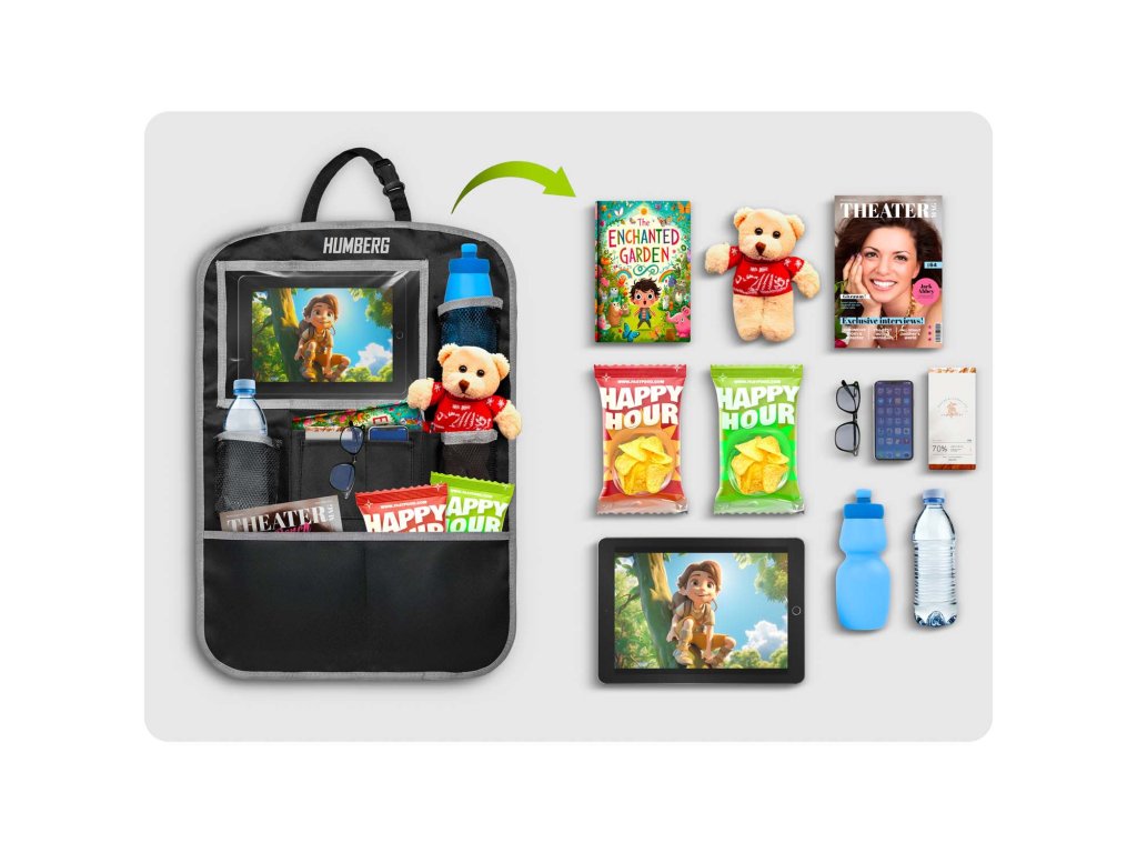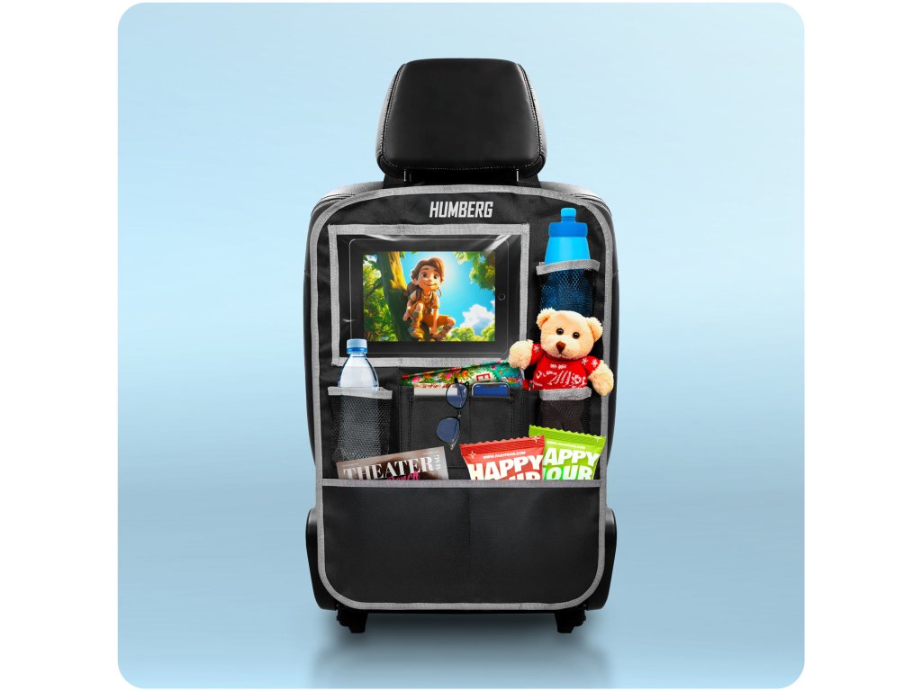 Organizator štiti presvlaku od prljanja od cipela i prozirni džep omogućava djetetu upravljanje tabletom bez vađenja iz futrole. Idealno rješenje za duge putove – manje nereda, više mira!