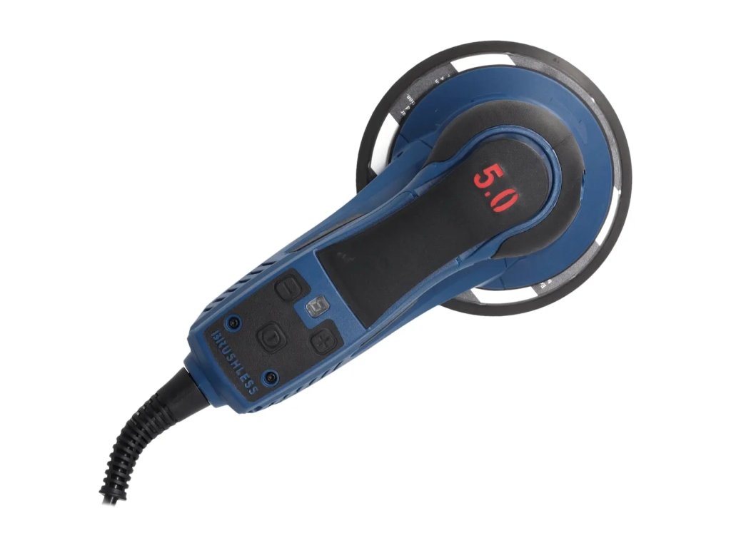 Brušenje baza ove jedinice izvršava istovremeno rotacijski i oscilirajući pokret, što omogućava vrlo brzo i učinkovito uklanjanje starih slojeva i izravnavanje površina. Okrugla ploča promjera 150 mm olakšava rad na velikim površinama. Veliki, 5mm, raspon ekscentriciteta čini rad s brusilicom znatno učinkovitijim od standardnih modela.