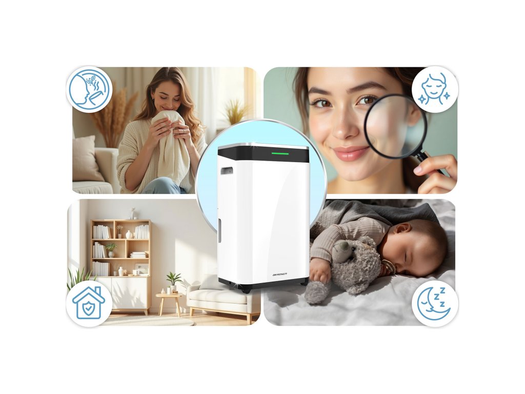 - Potpora u borbi protiv vlage – odvlaživač ograničava razvoj plijesni, gljivica i bakterija.