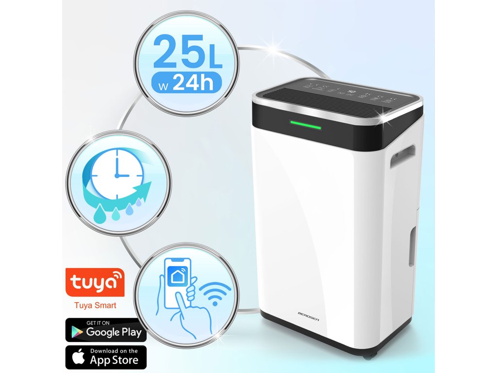 Odvlaživač zraka BERDSEN 25 l/dan | WiFi | 6,5 l rezervoar | Tiho | 30 m