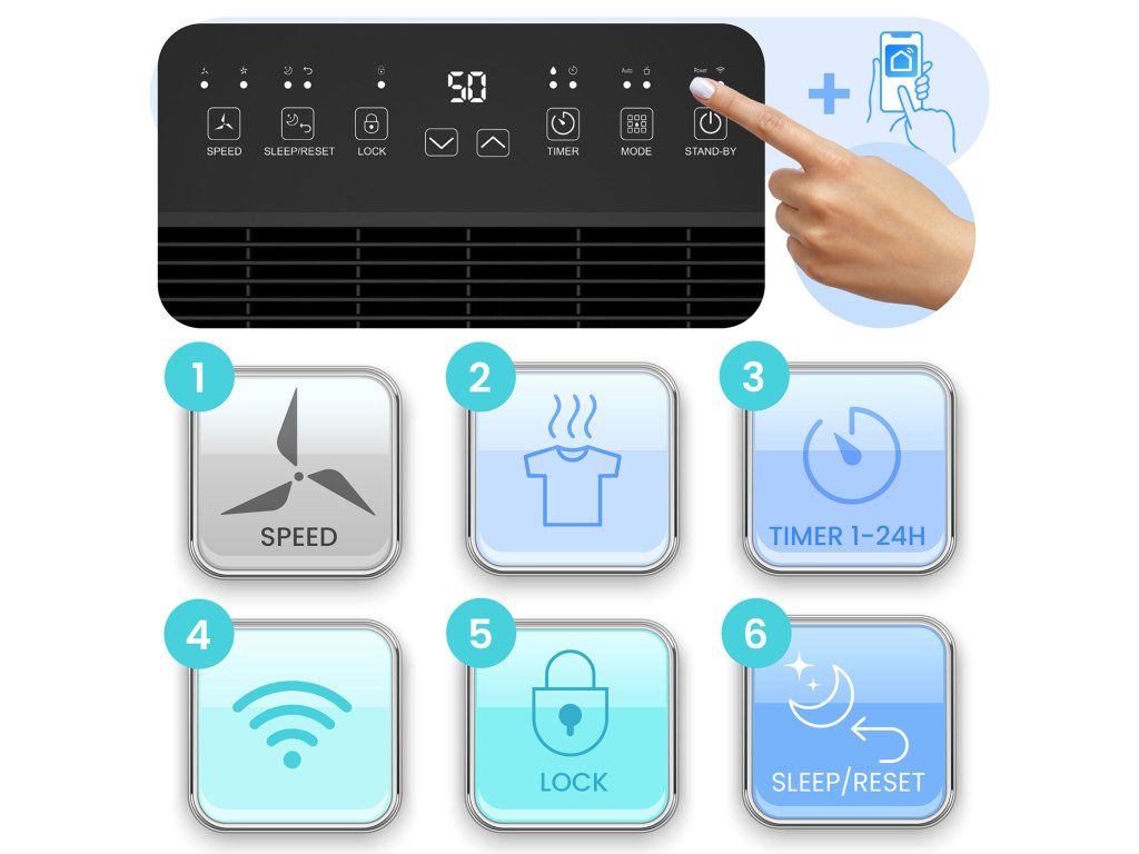 Potpuna kontrola nad odvlaživačem jednim pokretom prsta – lokalno i daljinski:
