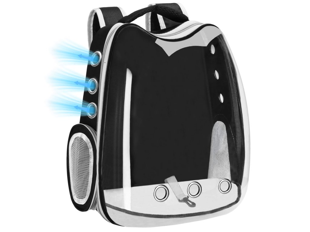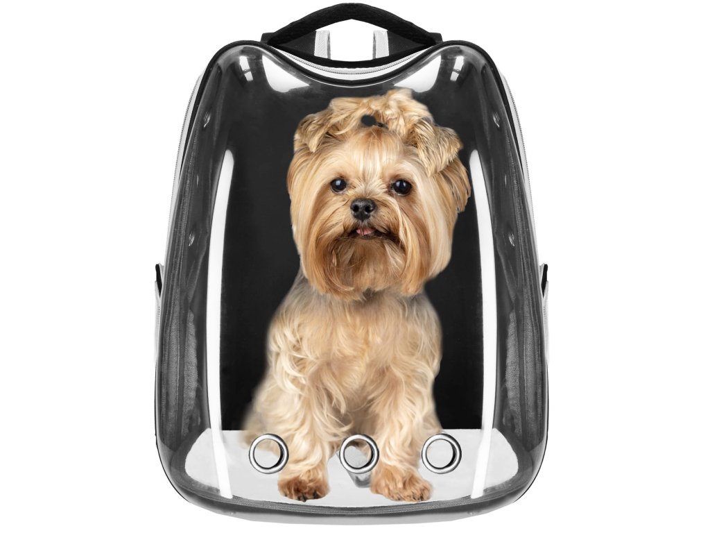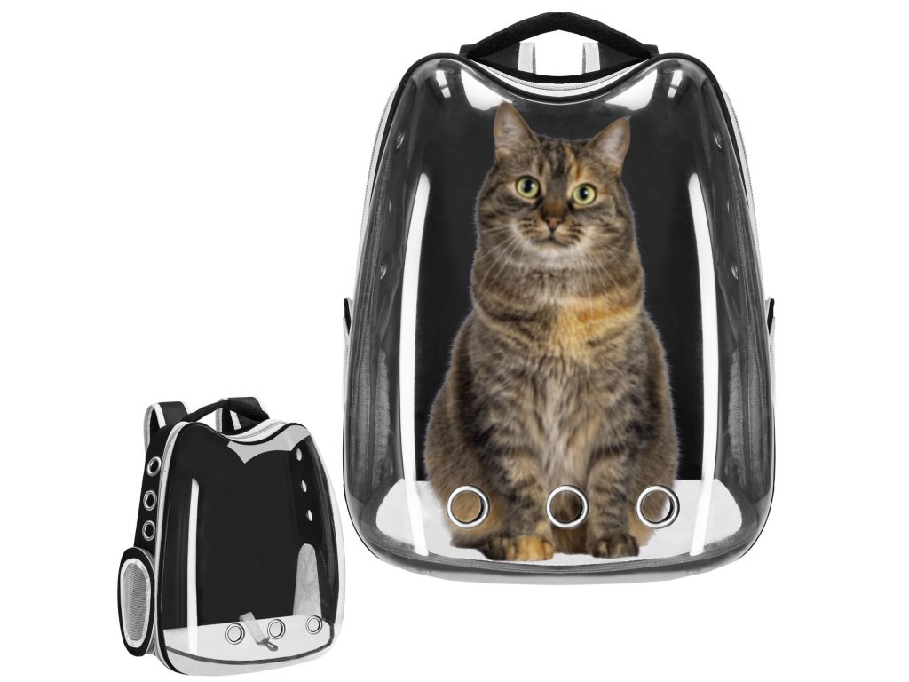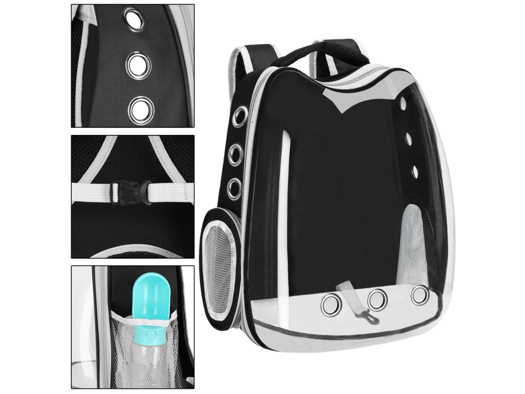 - Prednja strana ruksaka izrađena je od prozirnog, čvrstog PVC-a, odvojiva dvostrukim patentnim zatvaračem.