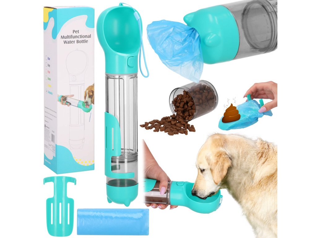 - Tip: multifunkcionalna boca za vodu za psa s pojilicom, lopaticom i spremnicima za hranu i vrećice