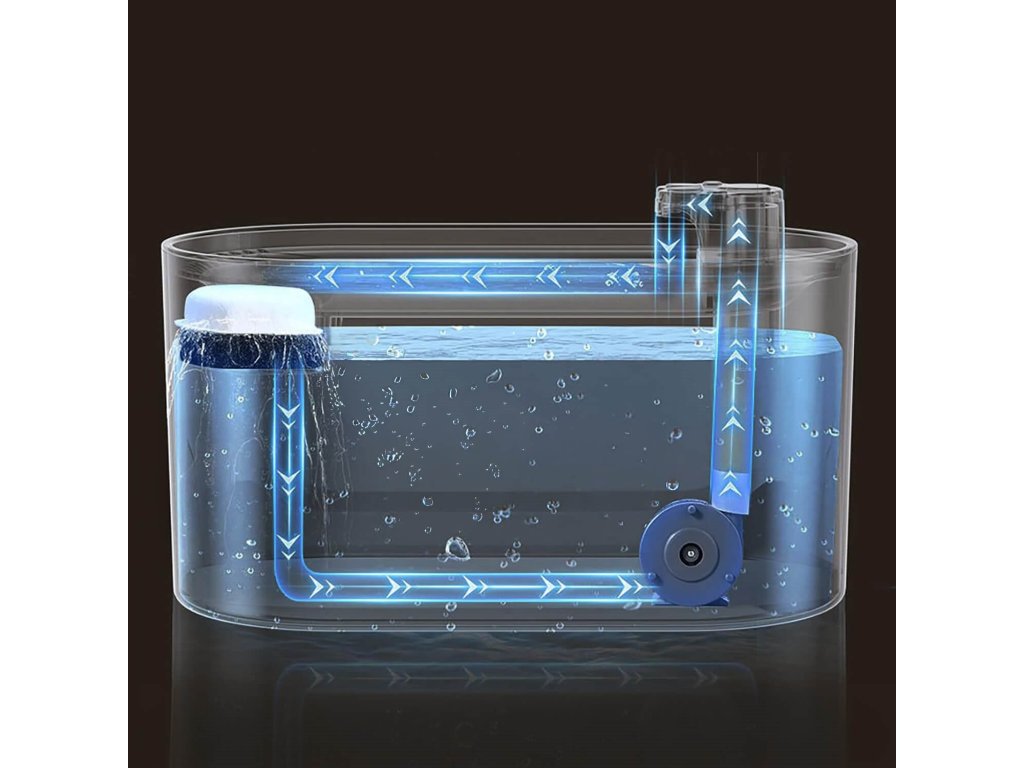 - Potrebno je pričvrstiti pumpu na dno pojilice, na izlaz pumpe potrebno je pričvrstiti cijev, a drugi kraj umetnuti u izbočeni otvor pri donjem dijelu poklopca.