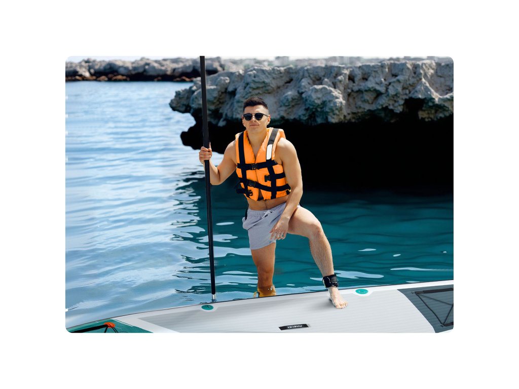 - Izdržljivo pričvršćivanje, spremište sa zatvaračem i struktura pjene povećavaju udobnost i funkcionalnost, osiguravajući stabilnost i jednostavno pohranjivanje predmeta pri ruci tijekom avantura na vodi.