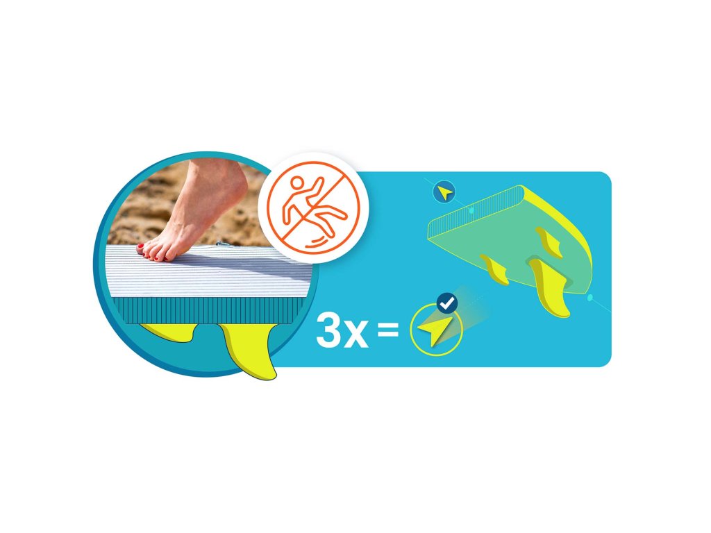 Protu-klizna površina osigurava čvrst zahvat čak i s mokrim nogama i 3 stabilizacijska peraja jamče savršenu kontrolu i laku manipulaciju. Plivajte s povjerenjem – bez straha od gubitka ravnoteže.