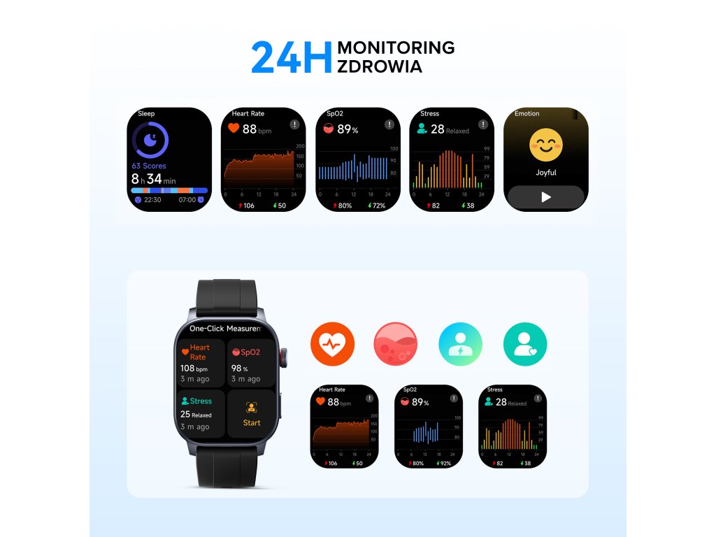 Funkcije: Monitor spavanja, pedometar, brojač potrošenih kalorija, praćenje menstrualnog ciklusa, mjerenje oksigenacije krvi, upravljanje pozivima, upravljanje glazbom, obavijesti s telefona, alarm, upozorenje neaktivnosti, štoperica, mjerač vremena, vrijeme