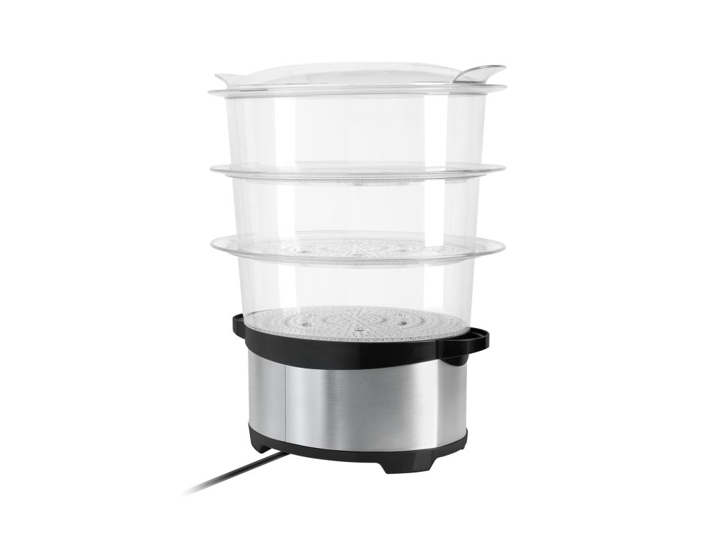 Uređaj ima pokazatelj razine vode, tako da ne morate stalno provjeravati spremnik je li ga potrebno dopuniti. Voda se može jednostavno dopunjavati bez prekida rada zahvaljujući posebnim otvorima s obje strane uređaja. Dodatna je prednost funkcija timera, koja isključuje uređaj i upozorava vas kada je obrok spreman.