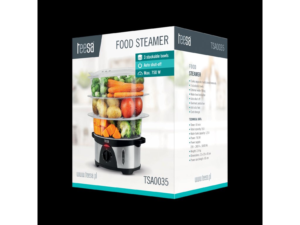Zanima vas kako kuhati na pari Kupite parni kuhalo Teesa TSA0035 s snagom od 750 W, koje će revolucionirati vaše kuhanje. Zahvaljujući velikom kapacitetu od 9,6 litara i trima praktičnim posudama, brzo ćete pripremiti zdrav i ukusan obrok za cijelu obitelj. Parni kuhalo Teesa dodatno osigurava da će hrana pripremljena na pari imati niži sadržaj kalorija i masti, pomažući vam da zadržite vitku liniju.