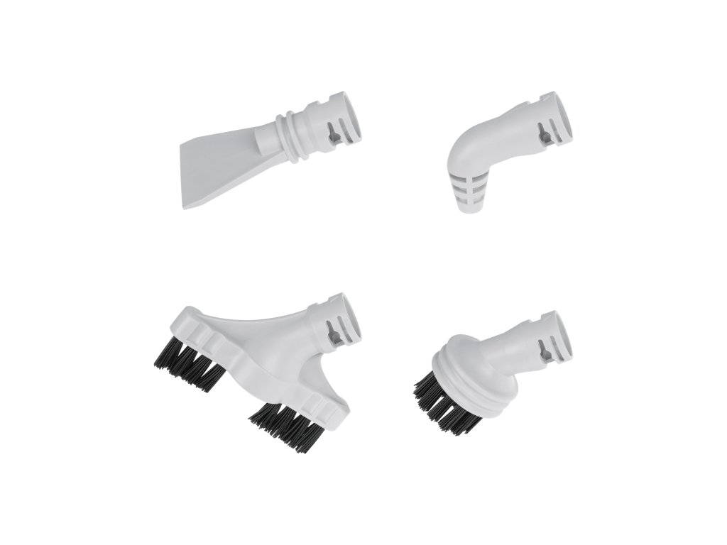 Set uključuje: 2x krpu, nastavak za tepihe, mjernu posudu, adapter, okruglu četku, nastavak za fugiranje, uski nastavak, strugalicu