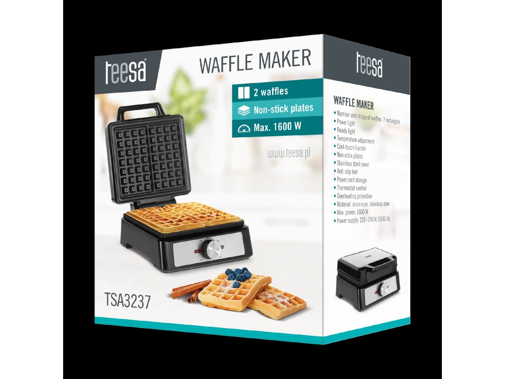 Vaflon Teesa 1600 W je savršen uređaj za ljubitelje hrskavih i zlatnih vafli. Omogućava brzu i jednostavnu pripremu ukusnog zalogaja za doručak, desert i bilo koju drugu priliku. Zahvaljujući čvrstoj konstrukciji i inovativnim tehničkim rješenjima, vaflon Teesa će služiti dugi niz godina i razveseliti slatkoljupce cijele obitelji.