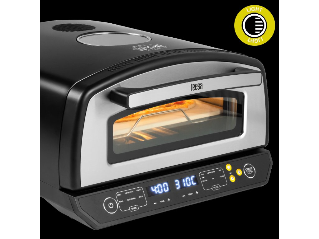 Pizza peć Teesa Supreme Elite ispunjava vaša očekivanja. Zahvaljujući 6 specijalnih programa možete pripremiti pizzu točno kako volite – bez pogrešaka i rizika od pregorijevanja. Odabirete vrstu pizze (npr. tanko tijesto, prijateljski Pan Pizza, napuljska ili smrznuta), i peć sama bira idealnu temperaturu i vrijeme pečenja. Vi stavite pizzu i nakon nekoliko minuta uživate u savršenom rezultatu – kao iz pizzerije!