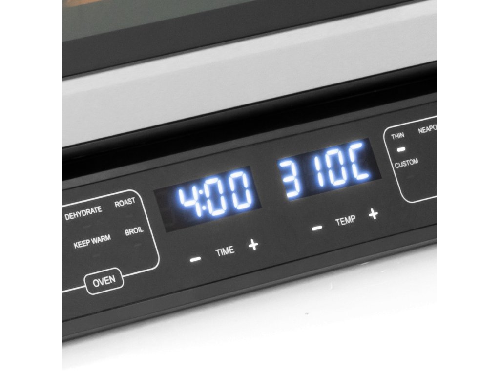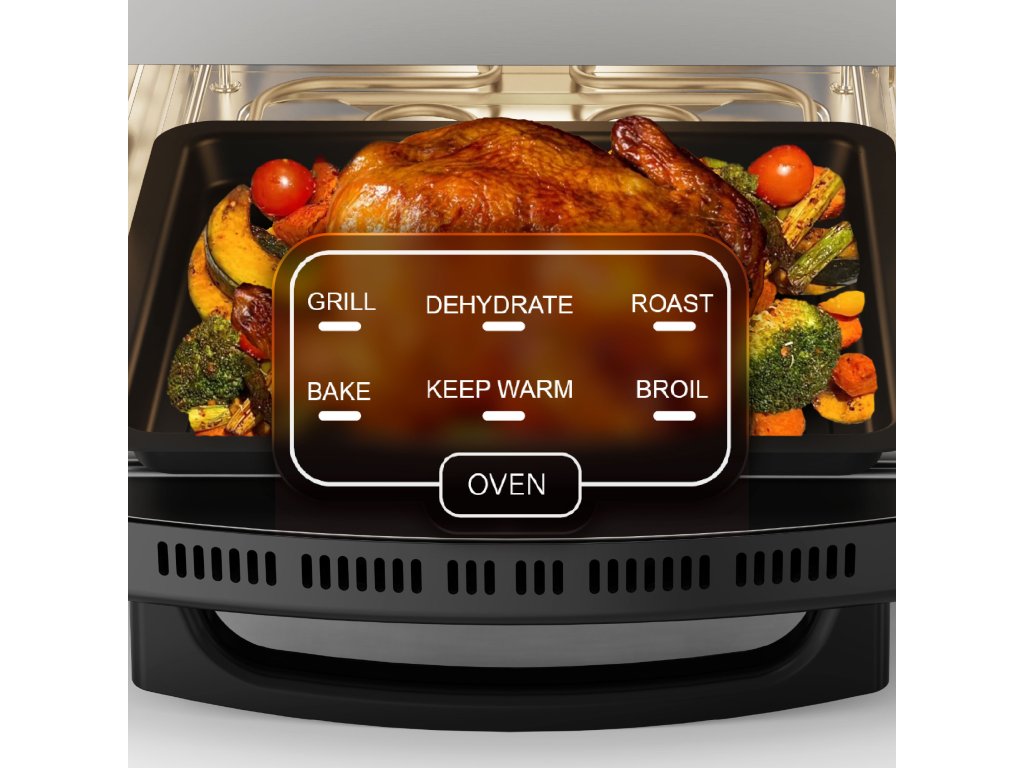 6 programa peći: grill (roštilj), dehydrate (sušenje), roast (pečenje), bake (pečenje), keep warm (održavanje temperature), broil (općećenje)