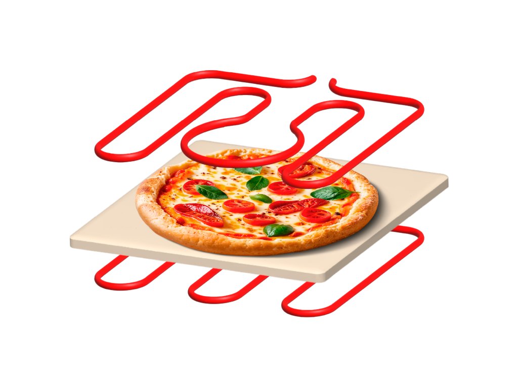 S snagom od 2200 W i dva grijača, pećnica doseže do 450°C – što znači brzo zagrijavanje i pizzu spremnu za samo 5 minuta! Gornji i donji element jamče ravnomjerno pečenje – kraj s pregorenim dnom i sirovim sirom.