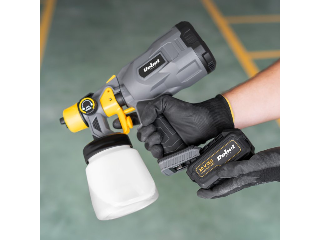 Pištolj za prskanje Rebel Tools RB-1061 idealan je za one koji vole osjećaj potpune slobode tijekom rada. Punjač i baterija, međutim, nisu uključeni u set. To je univerzalni dodatak koji je prikladan za većinu alata Rebel Tools. To je u redu ako je pištolj proširenje vašeg električnog alata u asortimanu jer ne opterećujete radionicu dodatnim nepotrebnim predmetima. Međutim, ako tek počinjete s alatima Rebel Tools, dopunite set baterijom RB-2001 i punjačem RB-2001-CH.