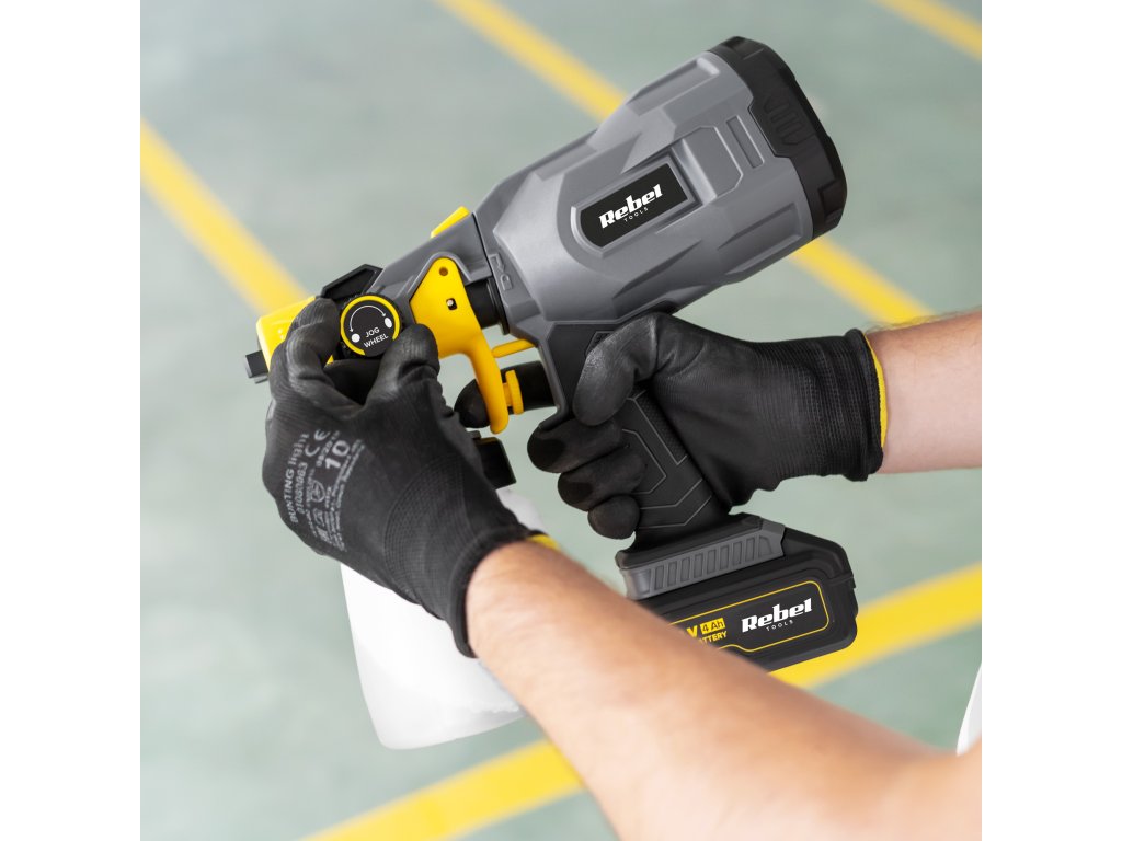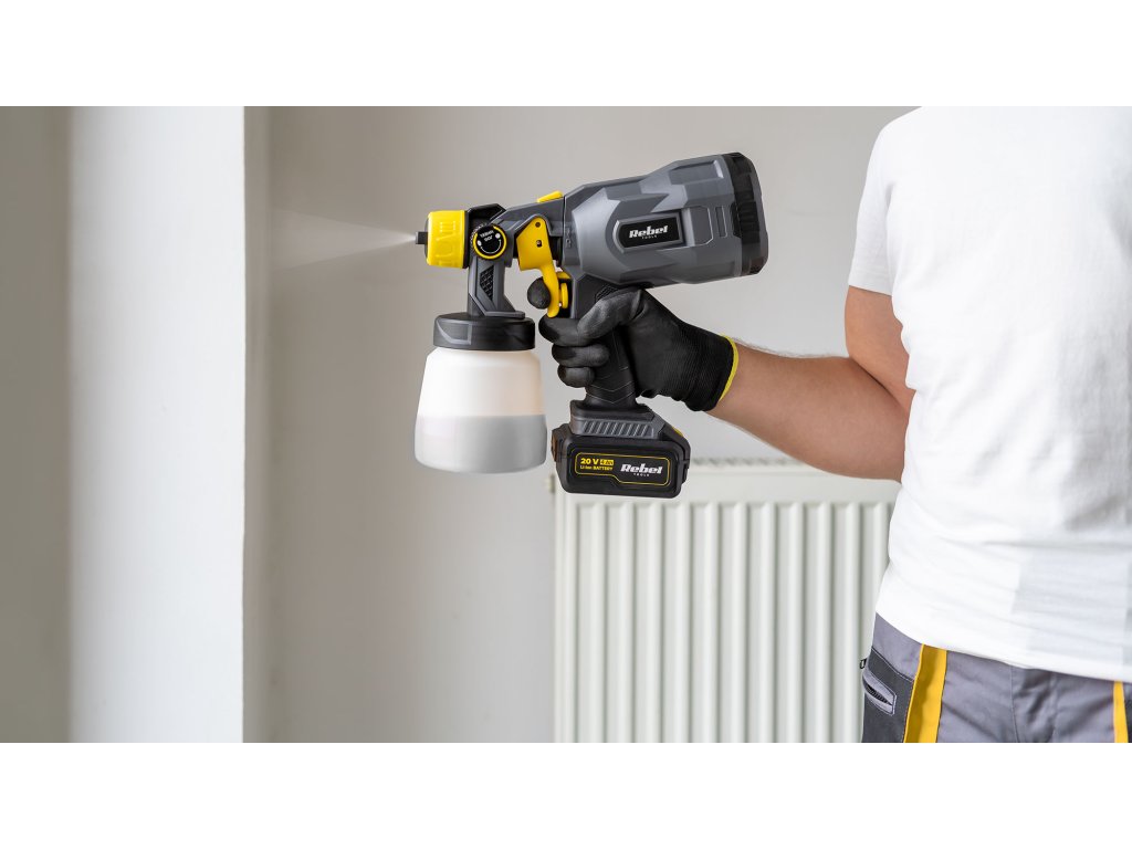 Radujete li se obnovi svog doma Zaboravite na kistove, valjke i posudu za boju! Baterijski pištolj Rebel Tools zamjenit će sav taj pribor. Jedna od glavnih prednosti je podešavanje širine raspršivanja. To znači da je ovaj pištolj za prskanje pogodan za bojanje velikih površina, kao i za bojanje detalja, tako da ga možete koristiti bilo da želite osvježiti boju zidova, promijeniti boju ormarića ili prebojiti ogradu. Razliku u preciznosti premaza sigurno ćete primijetiti kada budete htjeli obojati zidove prekrivene strukturnom žbukom ili dekorativne elemente predmeta, čije bi bojanje tradicionalnim putem bilo dugotrajno i problematično.